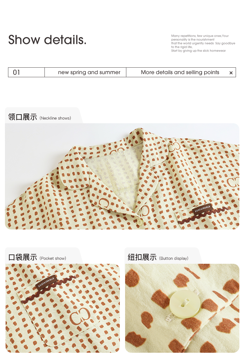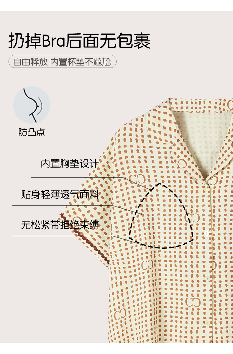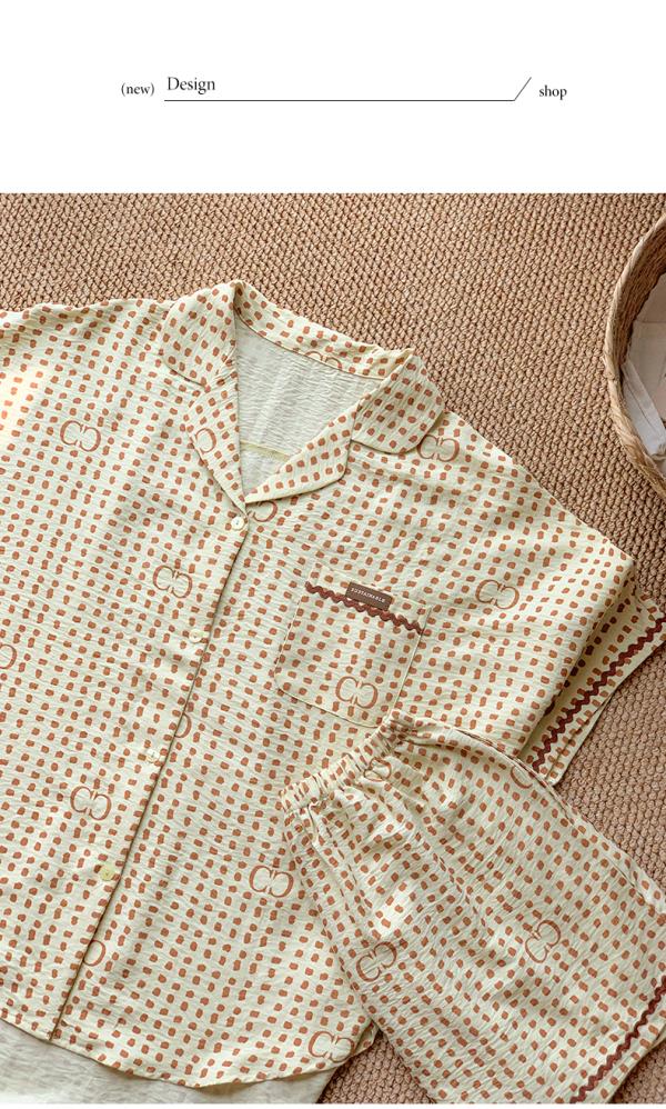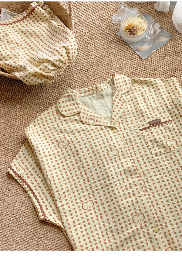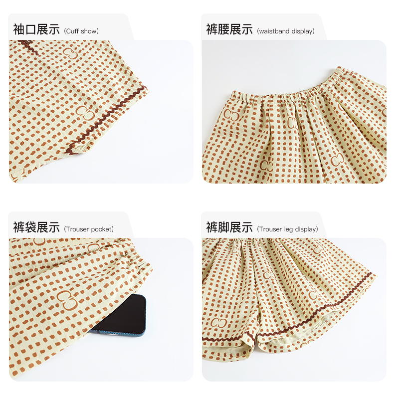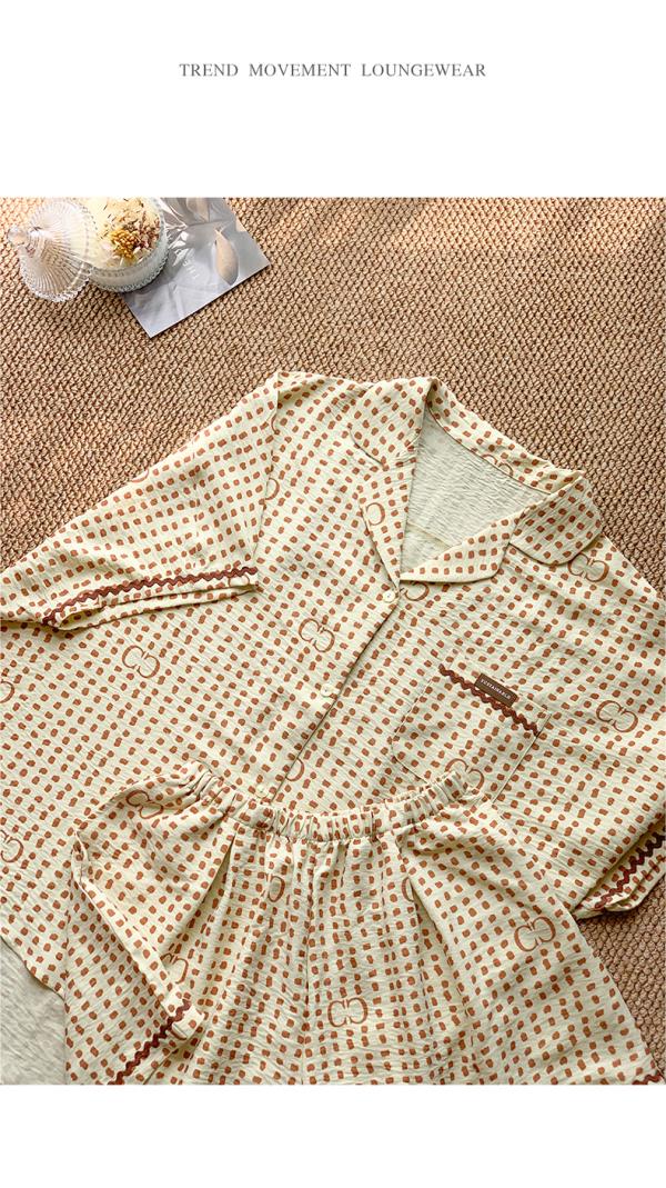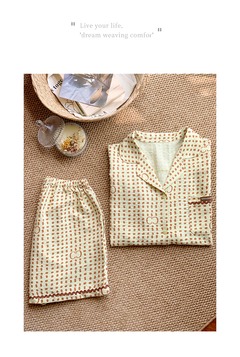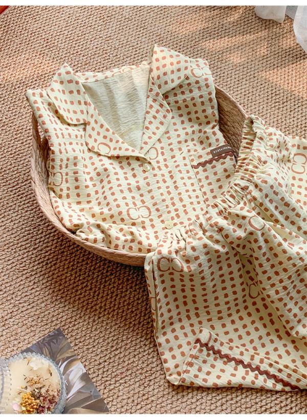 可人儿小众设计师新款泡泡绵女士睡衣夏季短袖可外出家居服三件套