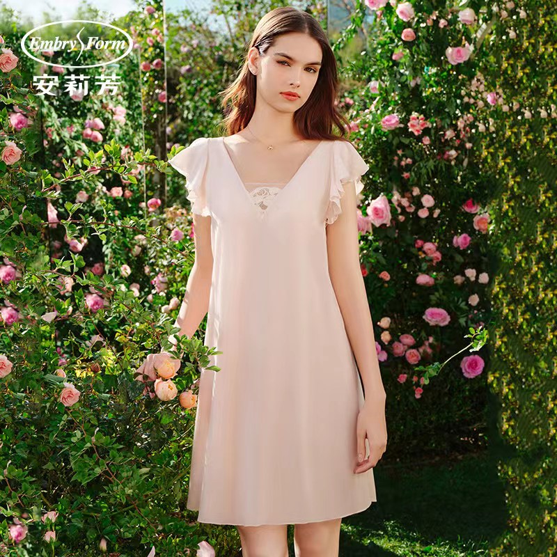 5F 安莉芳【花园印象】薄款带杯垫抑菌透气睡裙