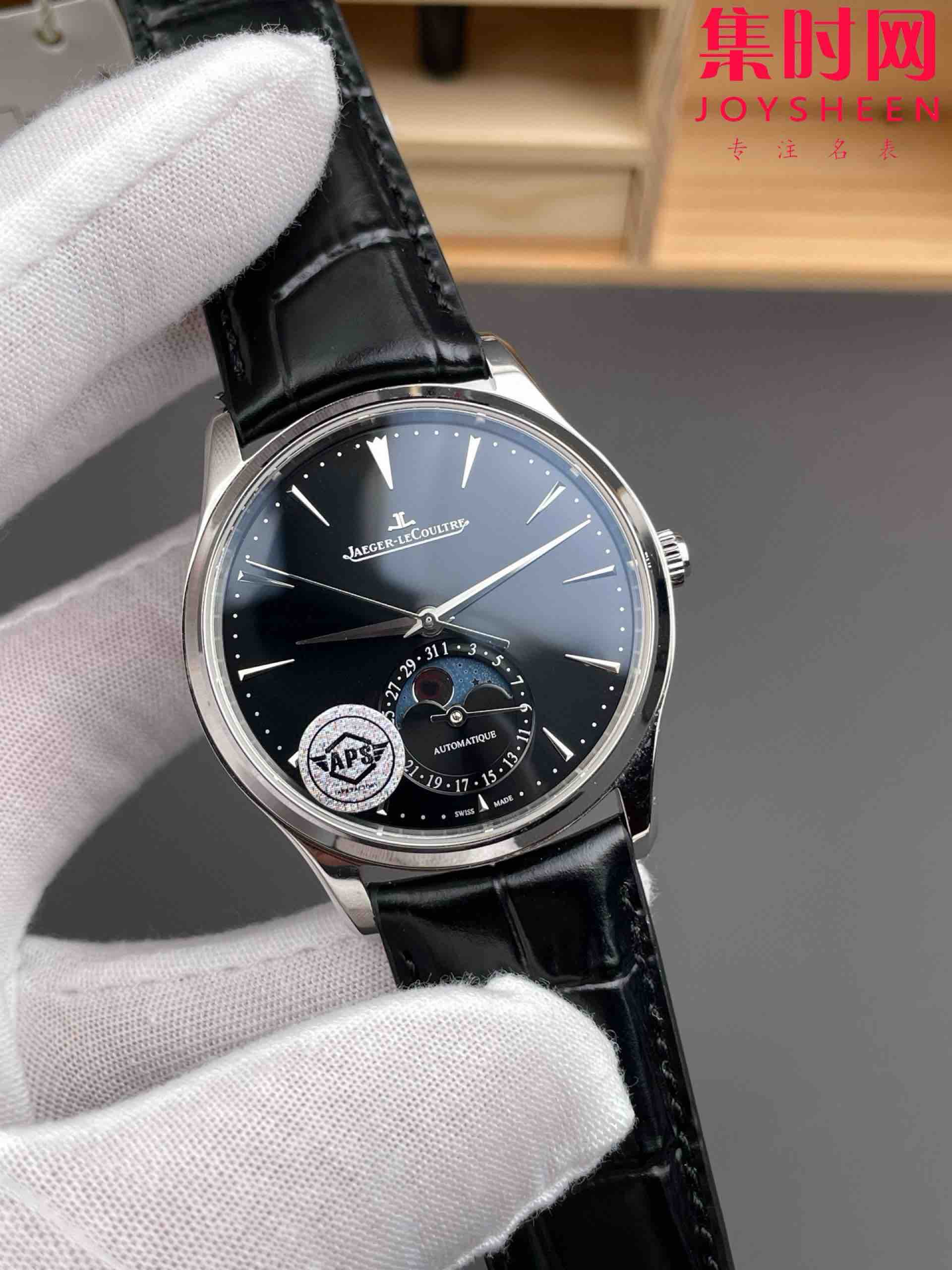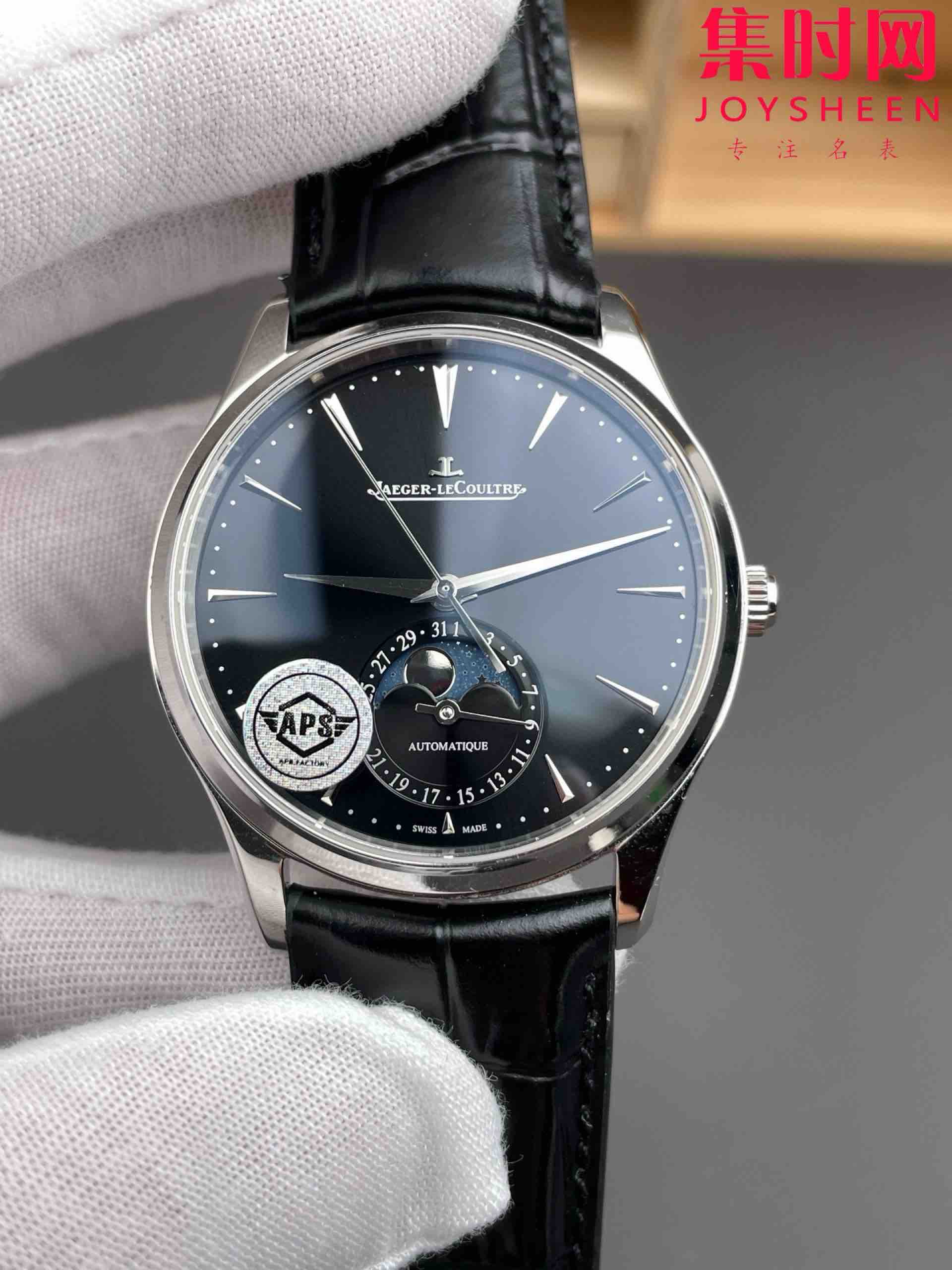 APS新款月相大师 积家月相大师系列 黑色盘 男士腕表 采用定制版积家CAL.925全自动机械机芯,月相一月一圈,功能同步原装,316L精钢表壳,进口蓝宝石镜面,意大利小牛皮表带 表径39mm