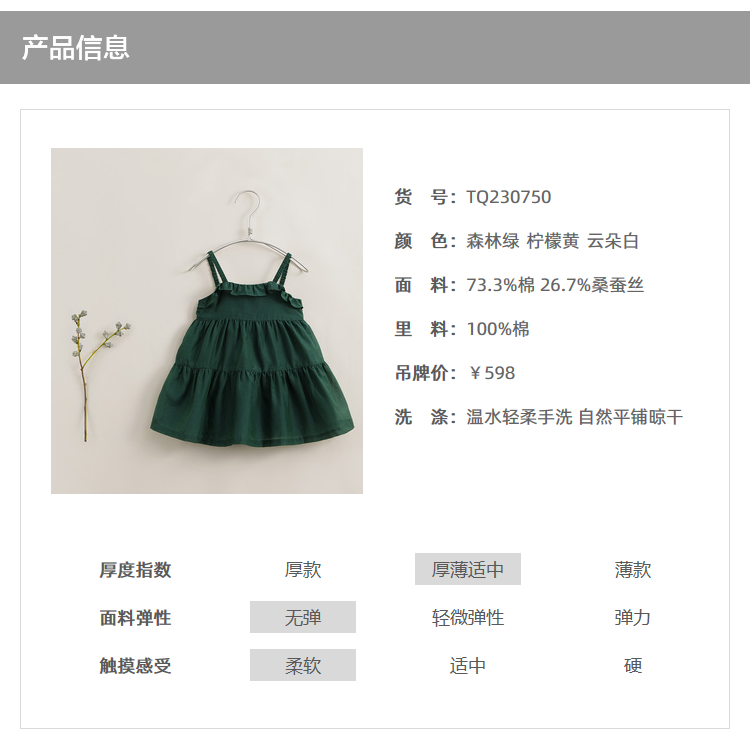 【马克珍妮 芦芙】新款夏装 女童棉真丝吊带连衣裙230750