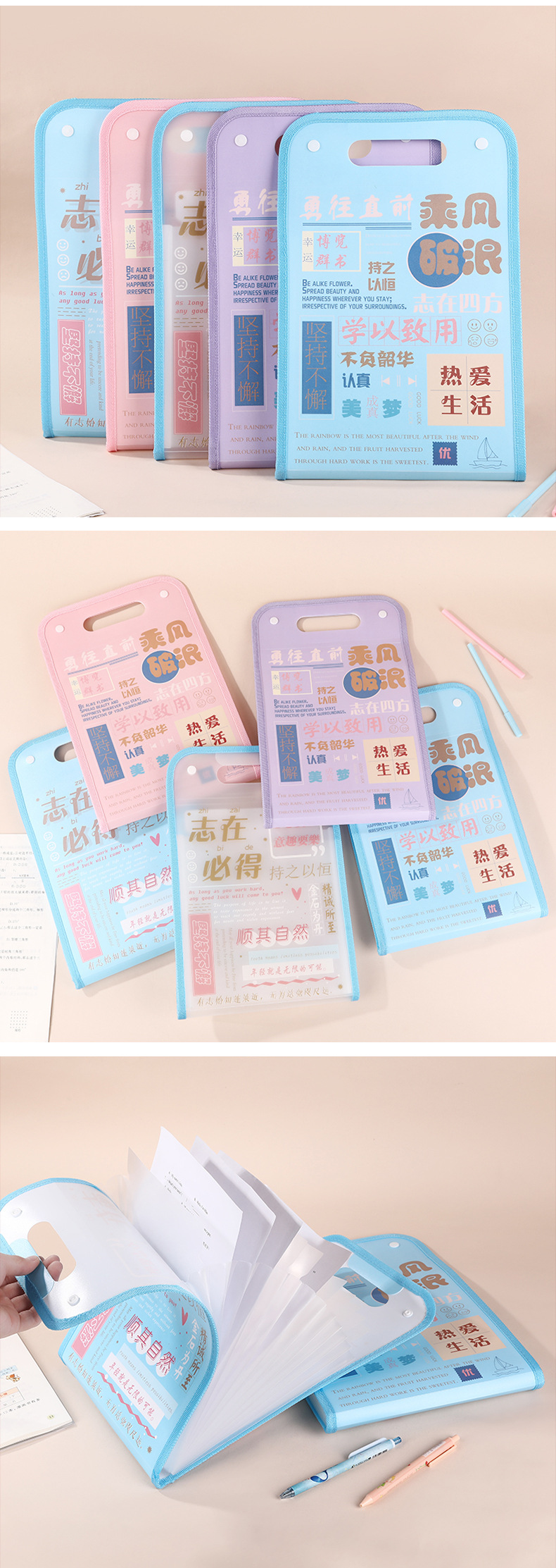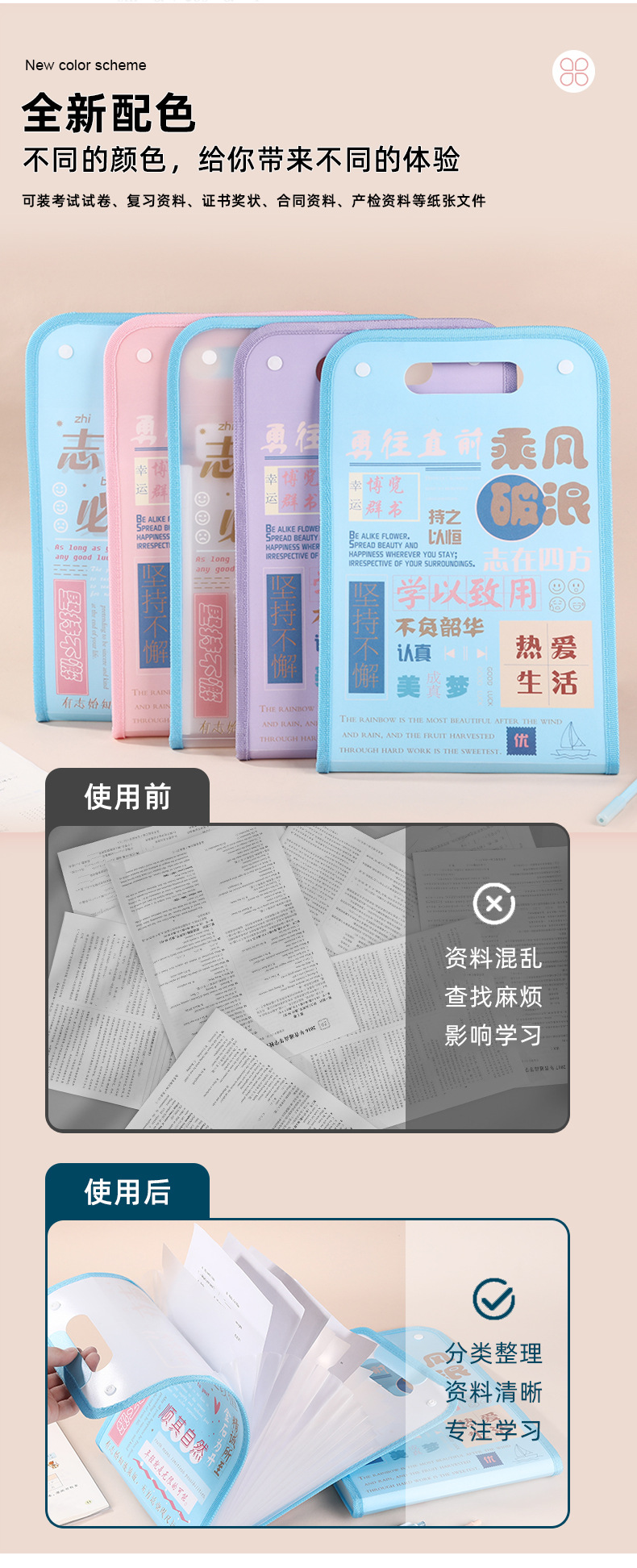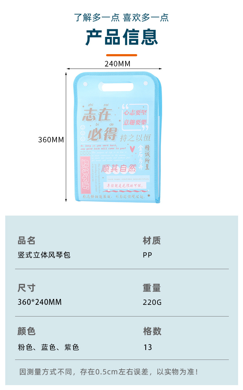 开学季福利!买一送一【13层大容量,试卷分类收纳】励志文学A4竖式立体风琴包学生试卷整理文件袋13格资料插页收纳册