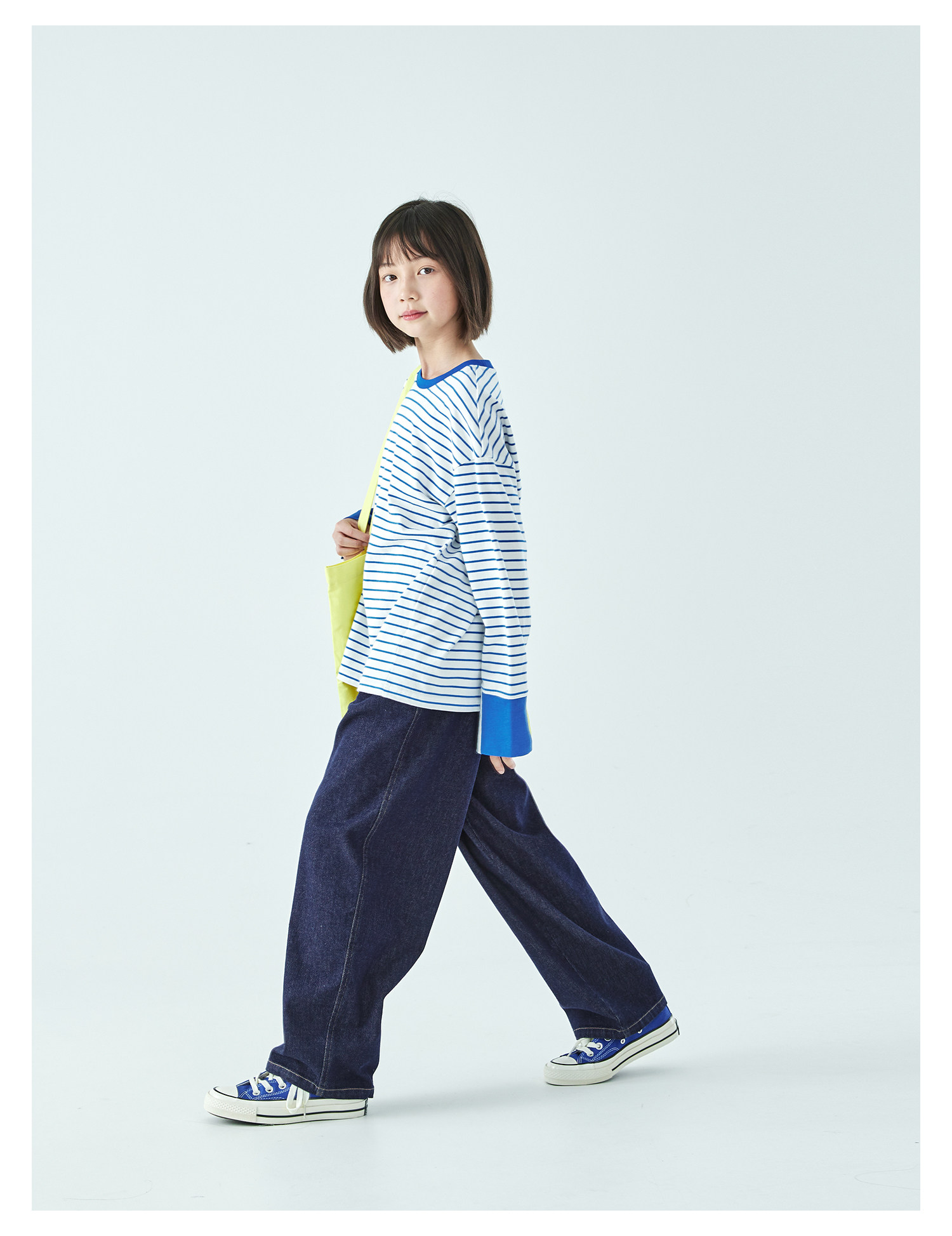 预售3.24发 棵初26年春季新款亲子中大女童经典条纹长袖T恤纯棉简约宽松上衣