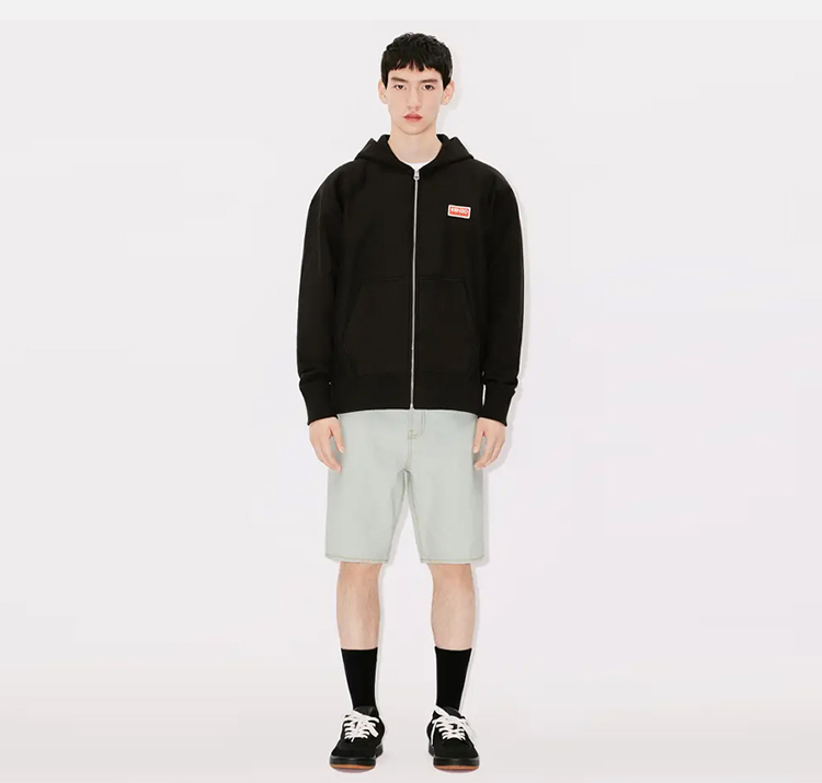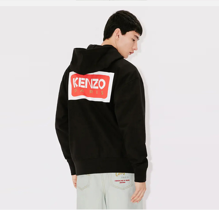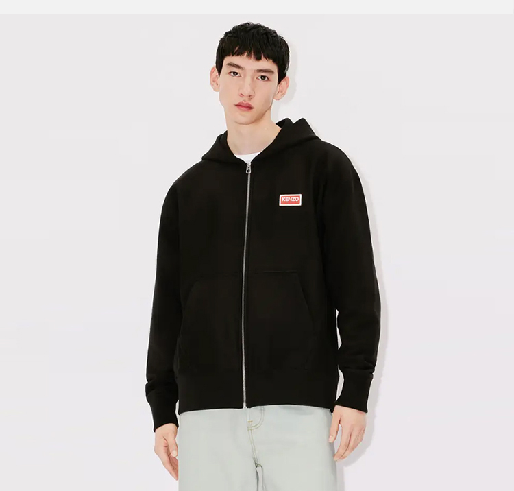 KENZO 高田贤三 男士棉质徽标印花拉链连帽卫衣 黑色 FD65 SW100 4ME 99J