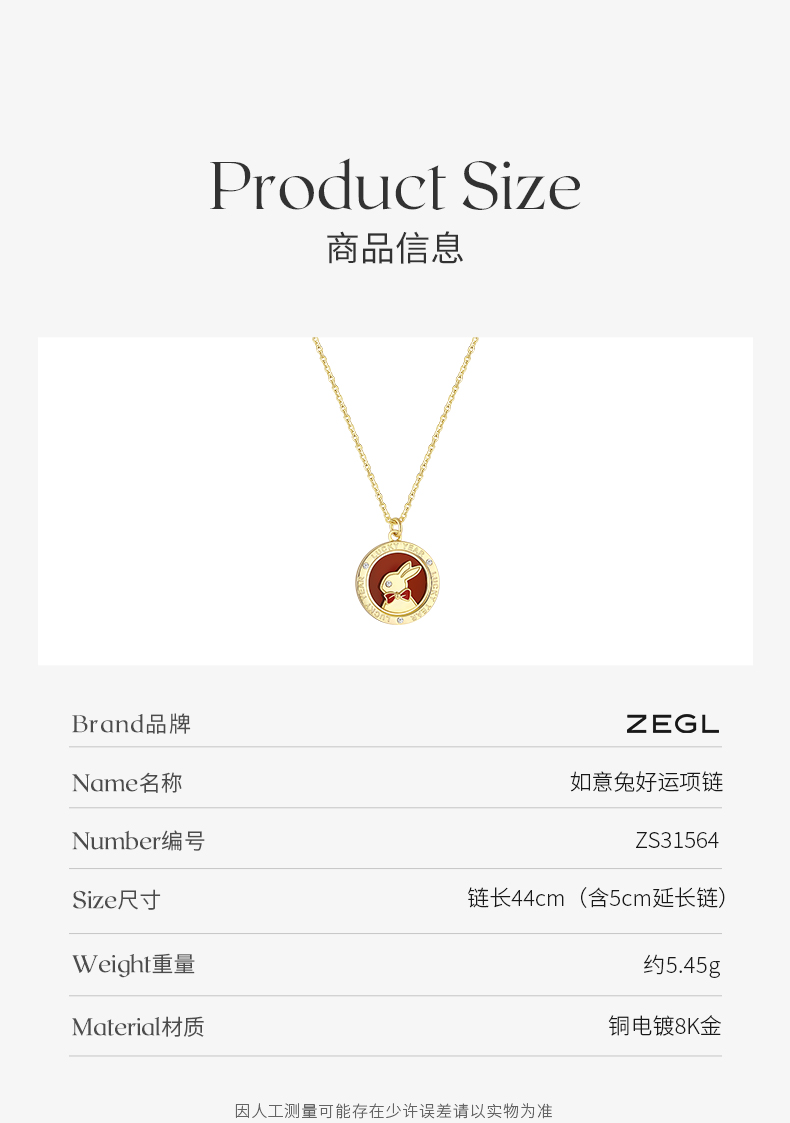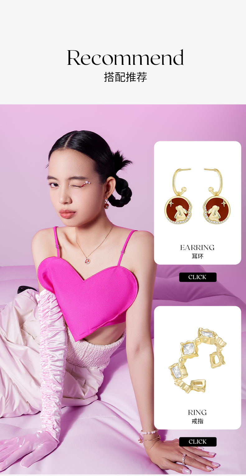 ZEGL设计师本命年兔系列红玛瑙兔子项链女生轻奢小众锁骨链配饰品