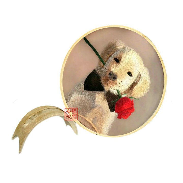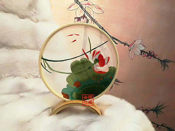 凯崎湘绣 湘妃竹双面绣 桌面办公室摆件 简约刺绣双面精品拍照取景摆件 手工刺绣精品荷错针绣