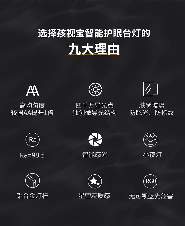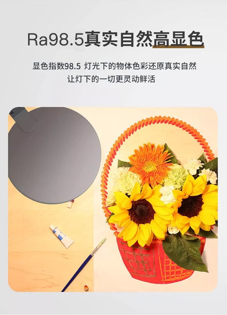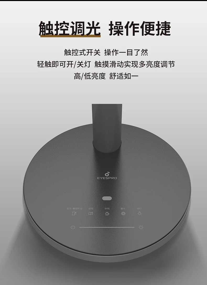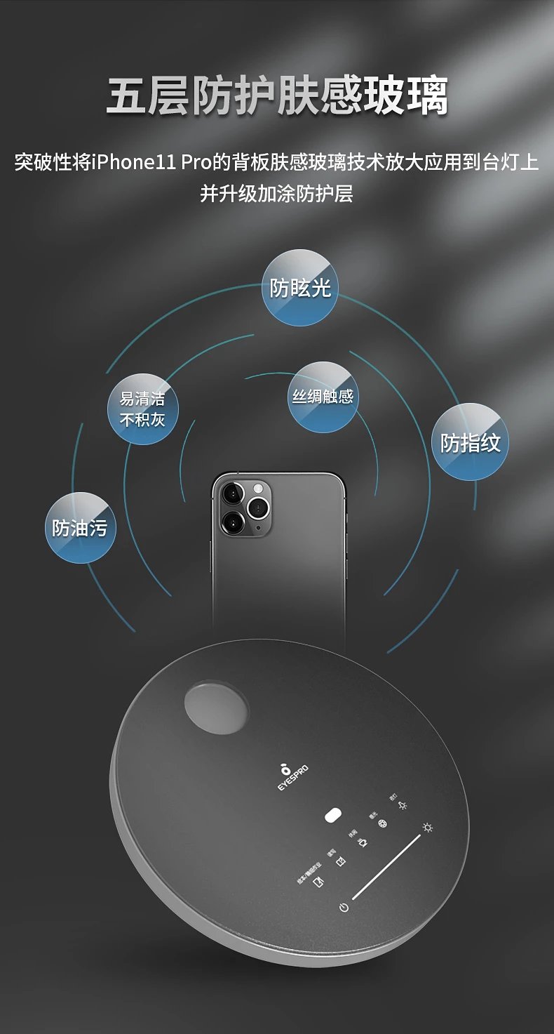 【产品介绍】 1. 1.95国AA级均匀度 2. 18.15CM微导光结构光源 3. “瞳”感应智能调光 4. 3档色温,适应不同场景 5. 学习补光+夜间照明两用小夜灯 6. 肤感玻璃操作面板,防眩防纹