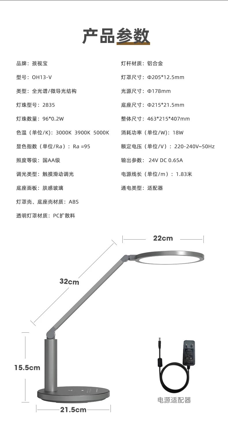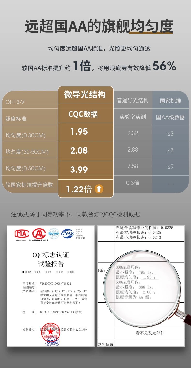孩视宝OH13-V,国AA级微导光全光谱台灯,降低眼疲劳度,无可视蓝光危害,光照更均匀,防眩光、防指纹!创造更健康的光环境