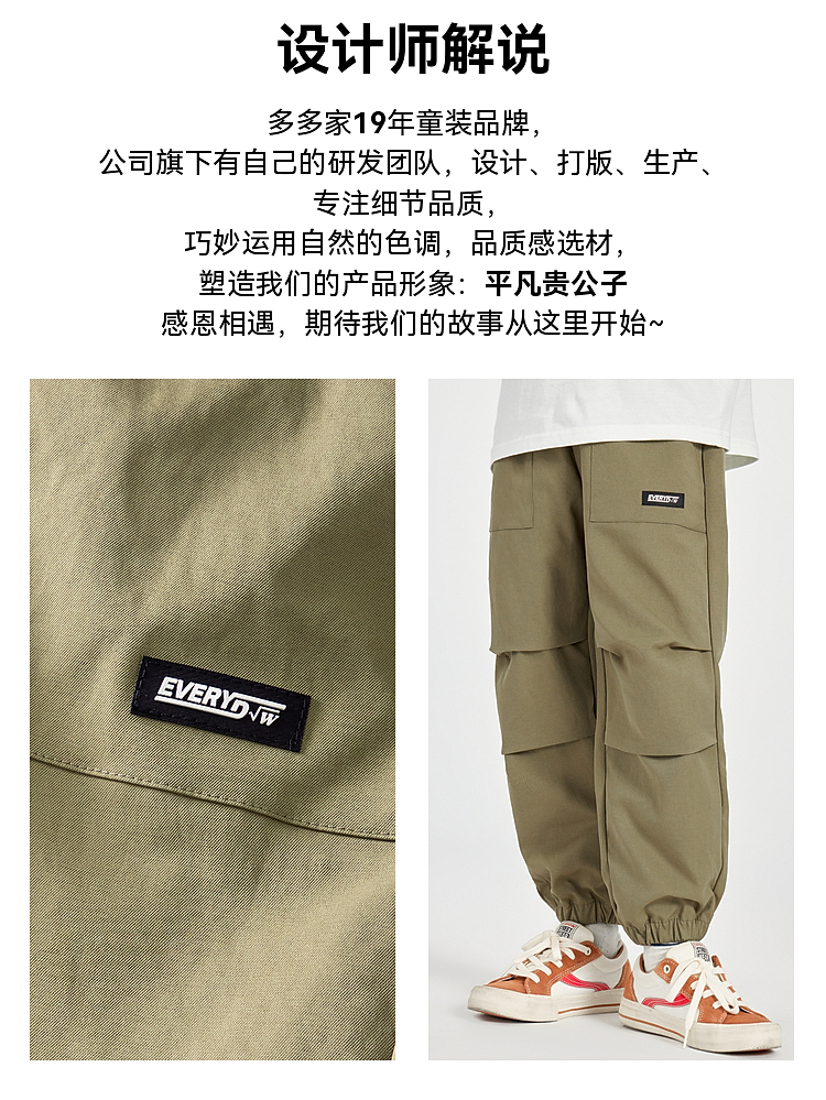 【团购价59.9】多多家男童工装裤2025新款春秋款儿童中大童大口袋洋气裤子春装潮10373