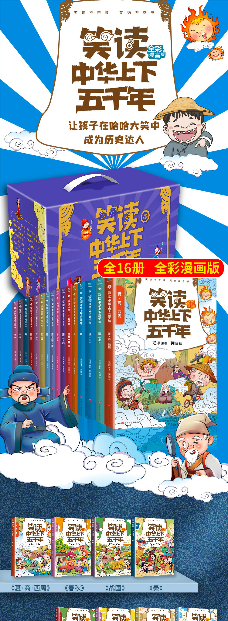 笑读中华上下五千年(全16册)全彩漫画版 精装礼盒包装 附赠中国历代帝王图谱大墙书