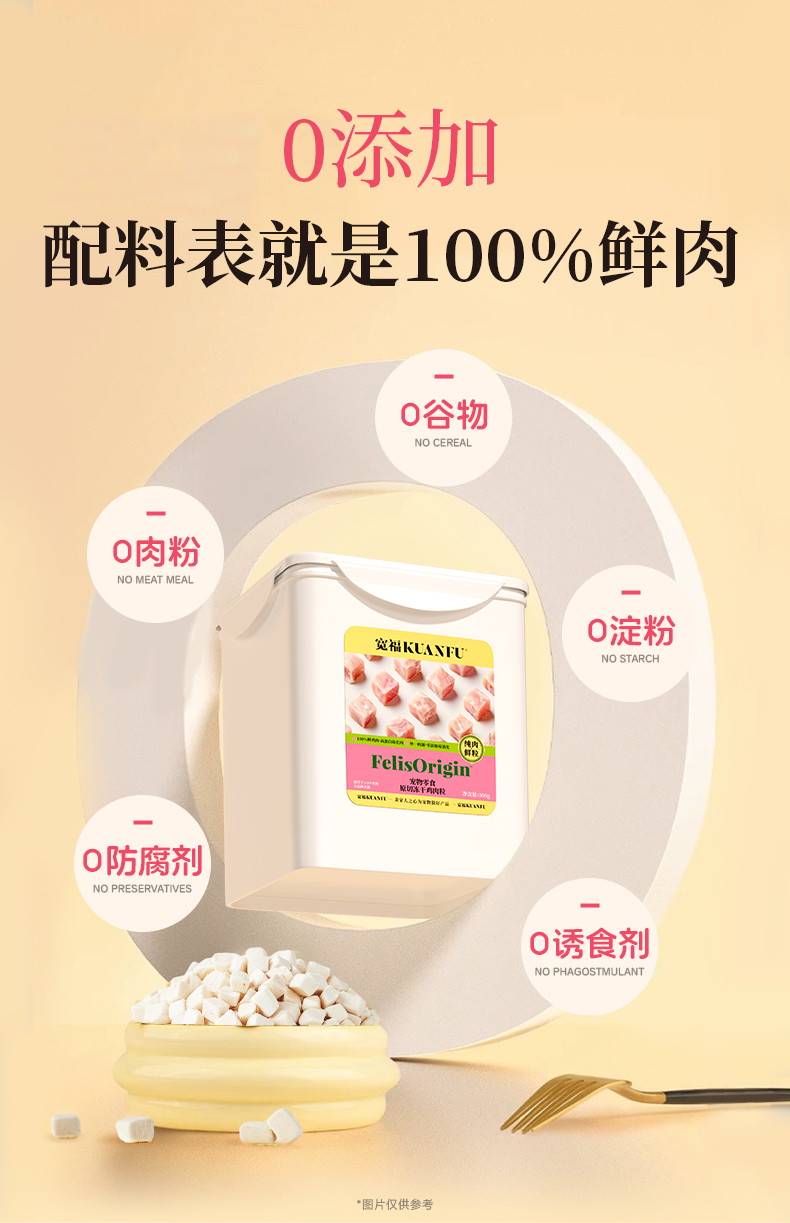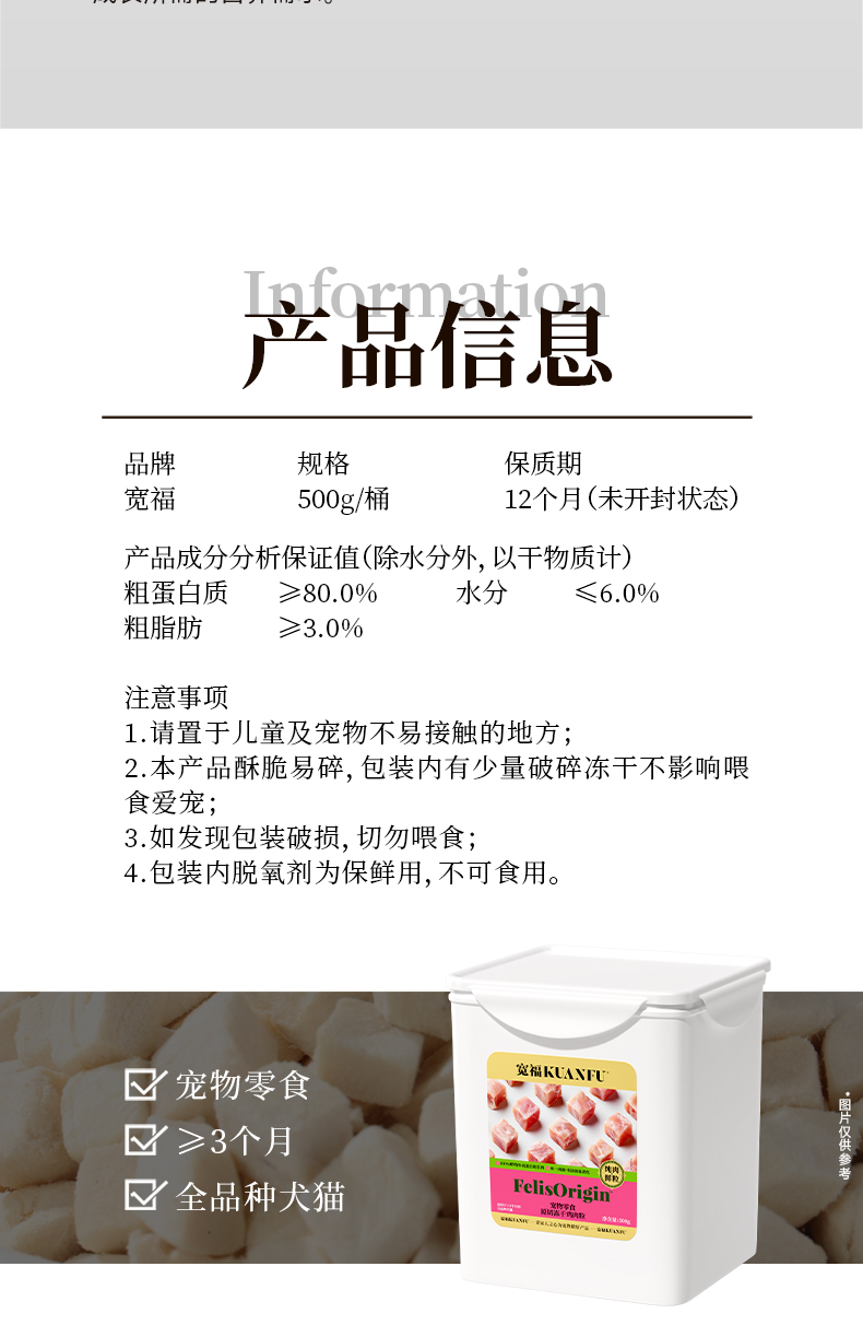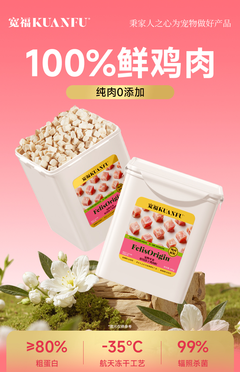 【500g鸡肉粒冻干】宽福 大肉粒 100%鸡肉 无任何添加 均衡营养 助于增肥发腮