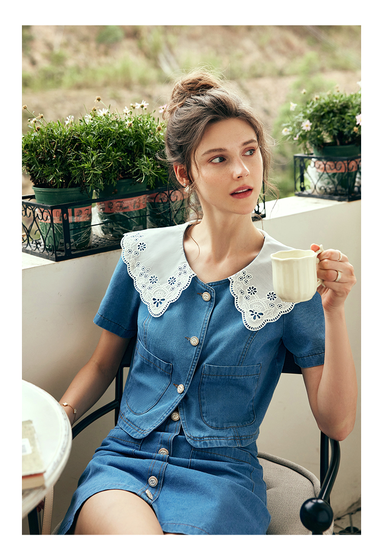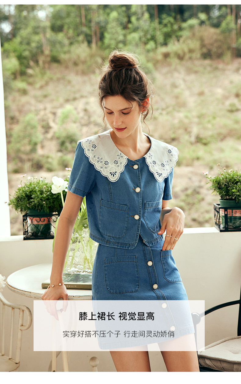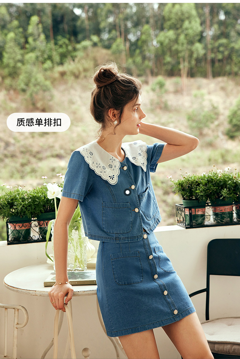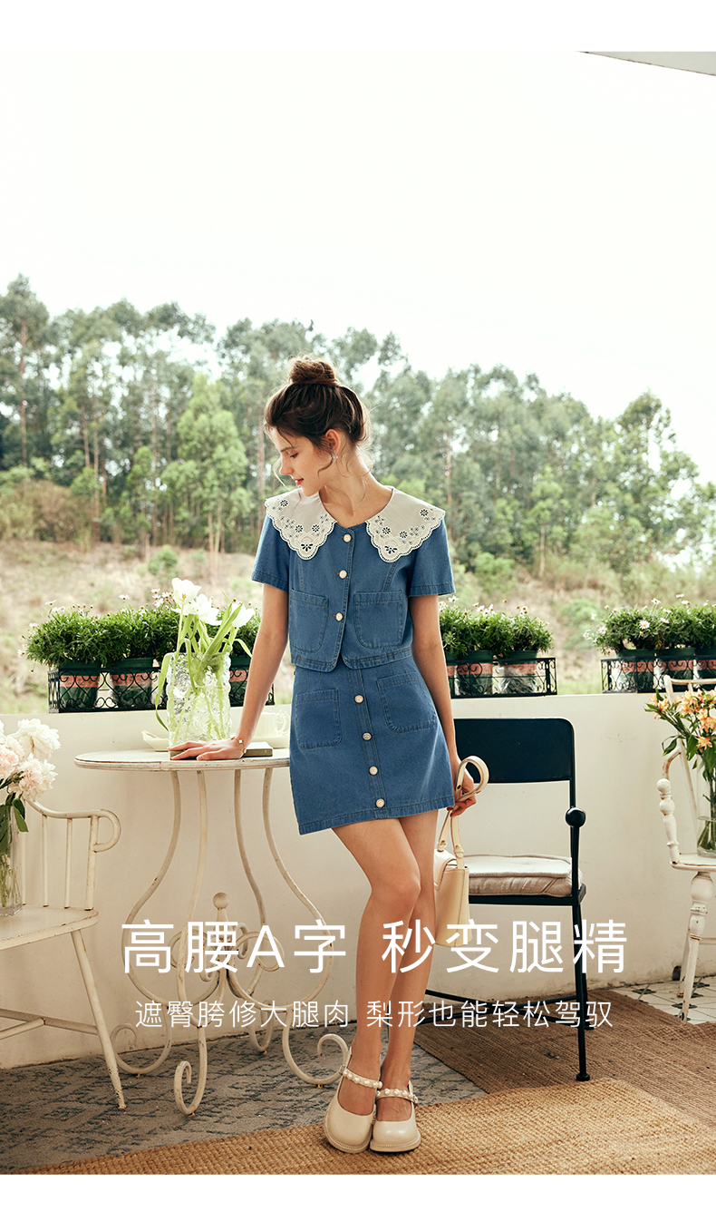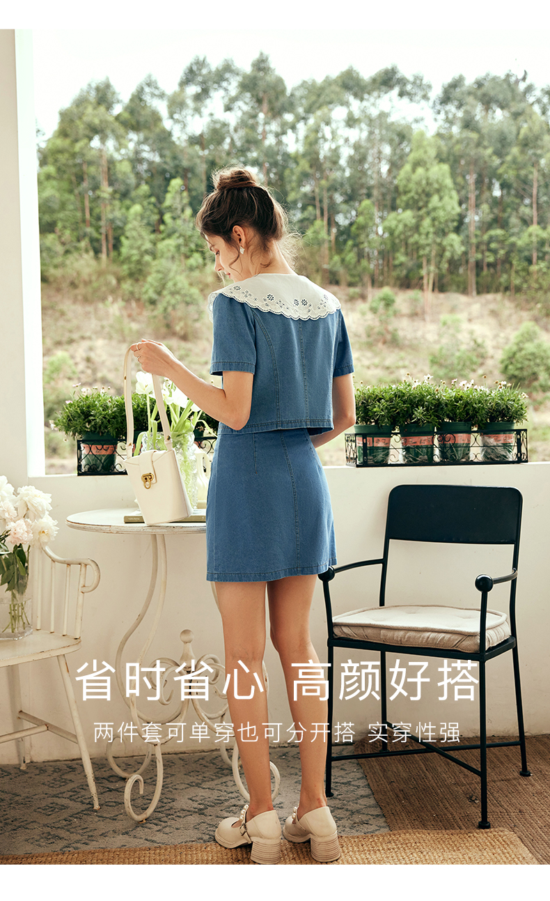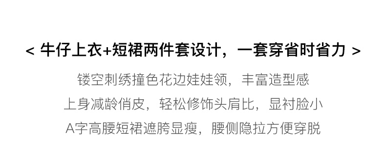 OLrain欧芮儿法式娃娃领牛仔时尚套装女夏季2023年新款裙子两件套
