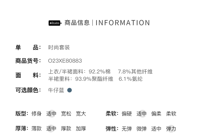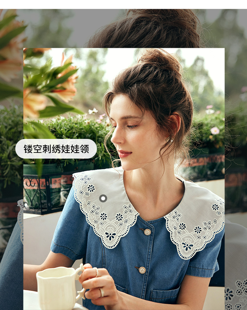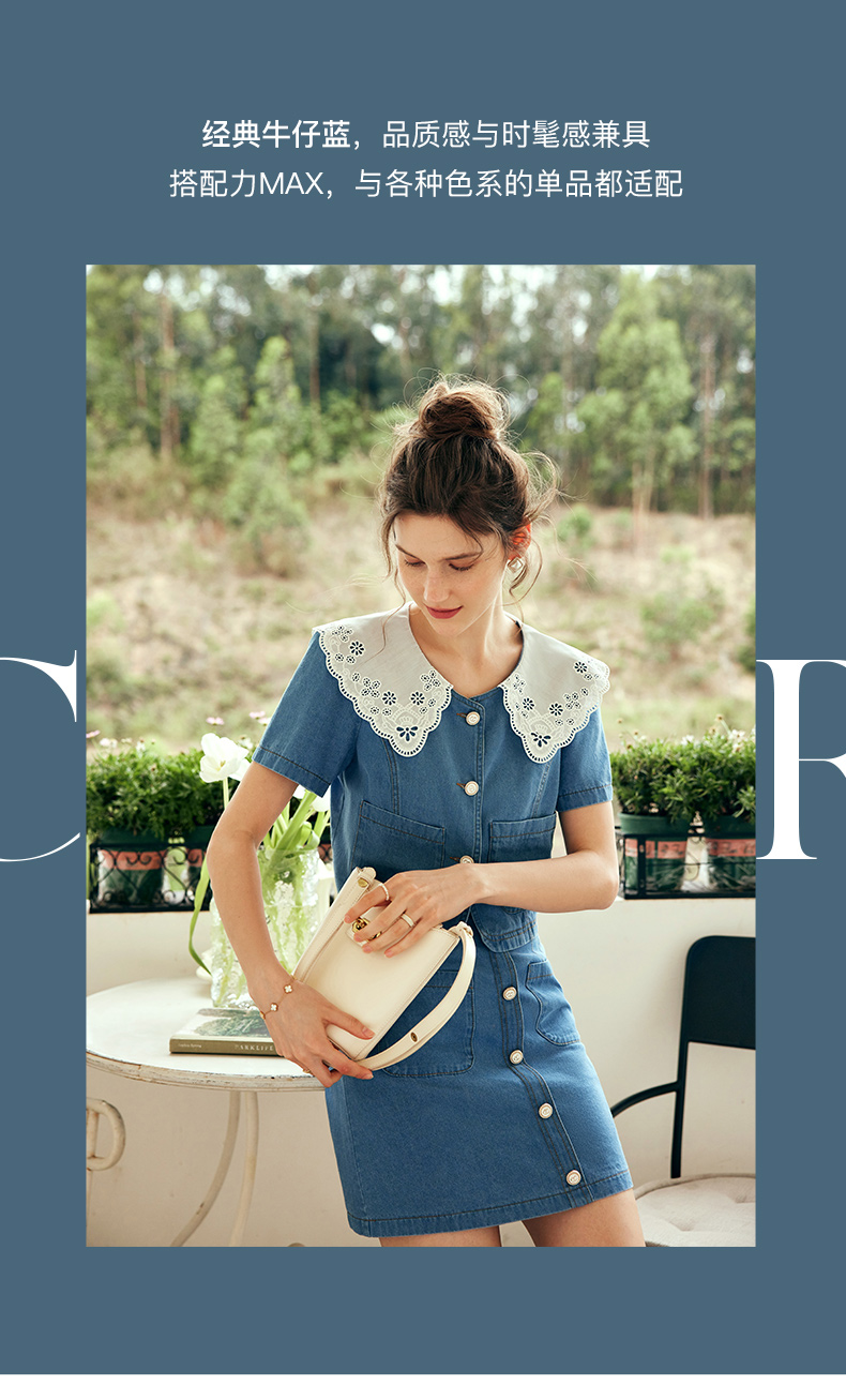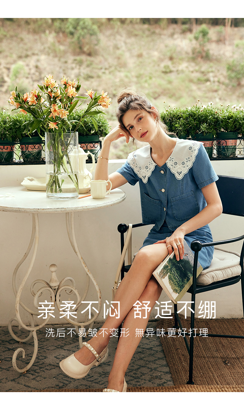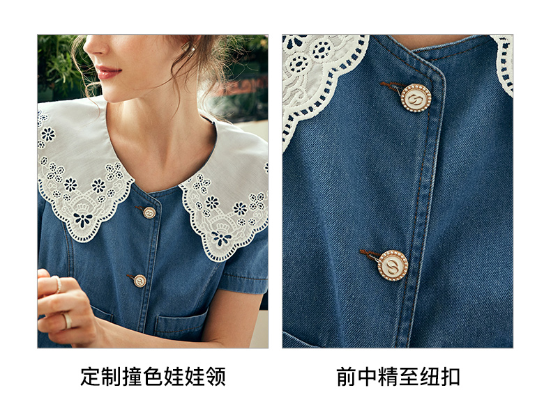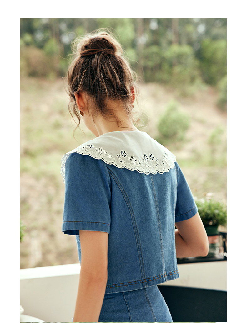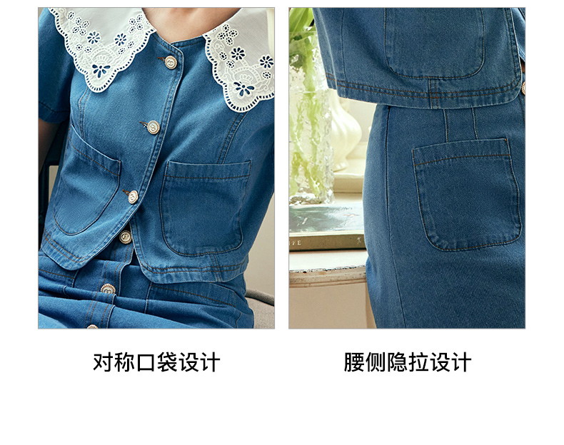 OLrain欧芮儿法式娃娃领牛仔时尚套装女夏季2023年新款裙子两件套