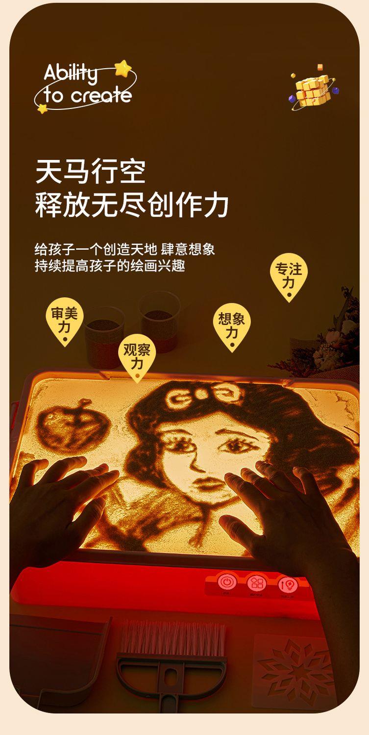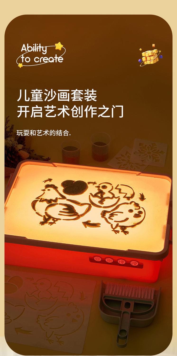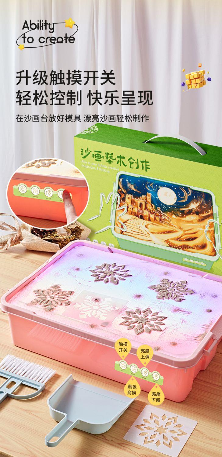 【玩耍与艺术的结合】柯学基迪儿童手工沙画箱 漂亮沙画轻松制作 3灯可调节 赠模具+清洁套装
