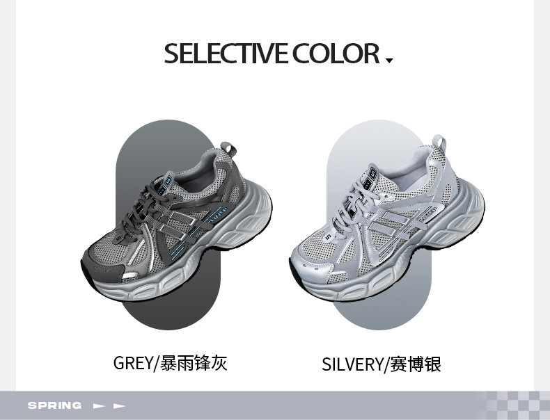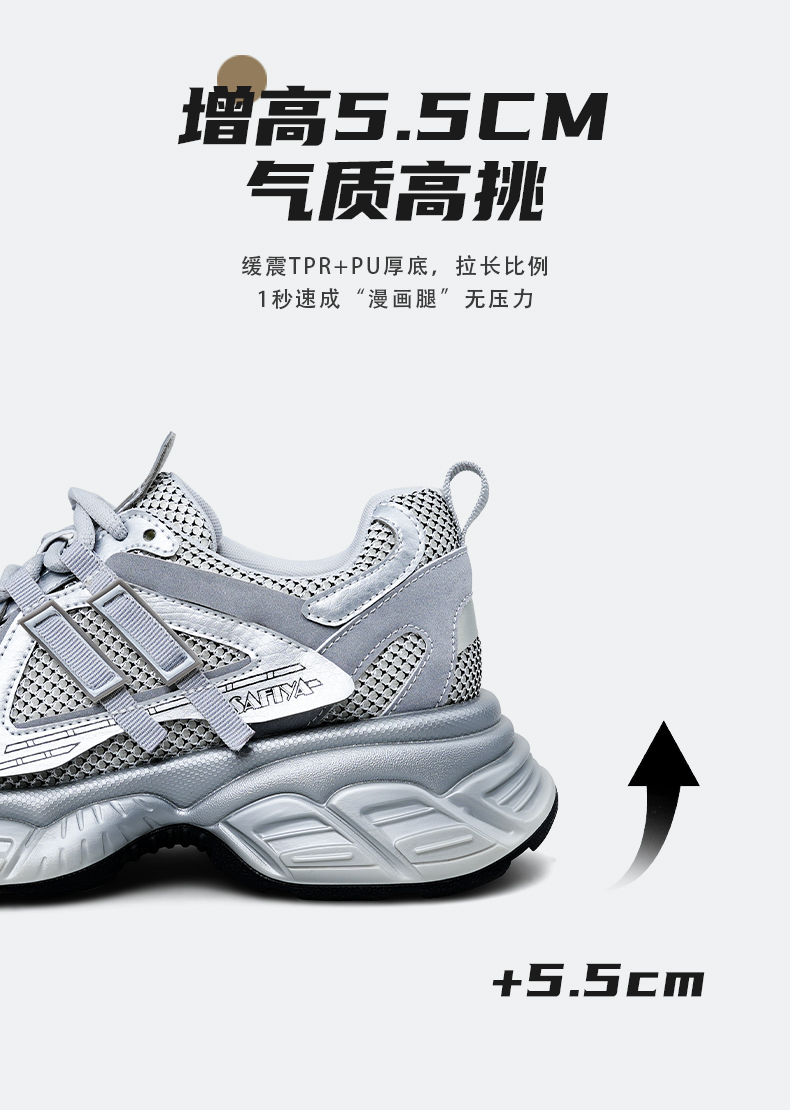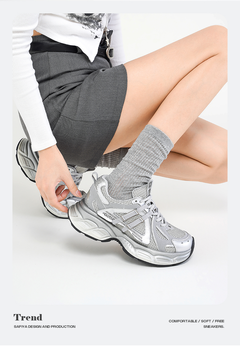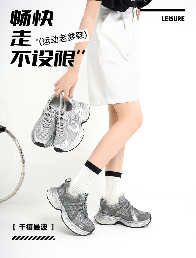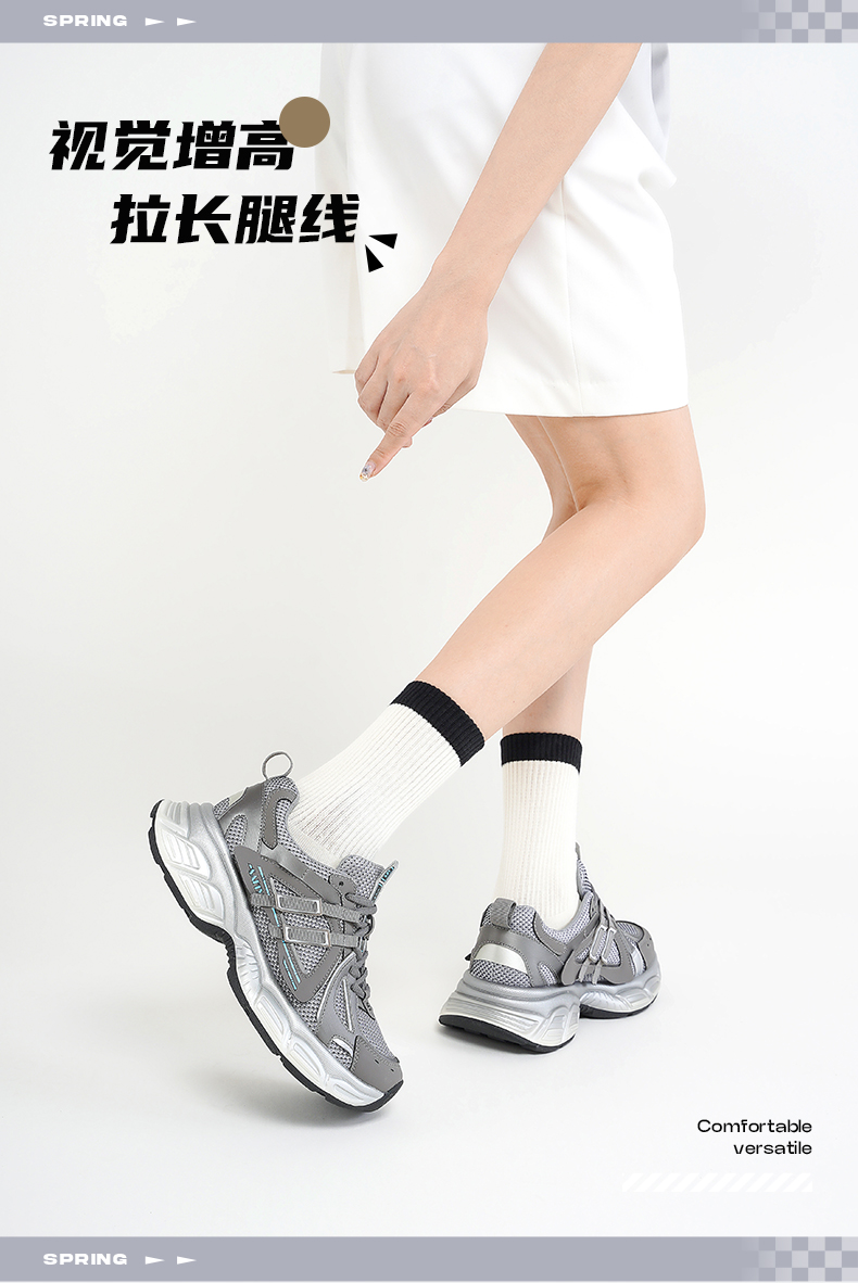Safiya/索菲娅2025潮流机能透气显脚小百搭运动厚底增高老爹鞋SFD3112177
