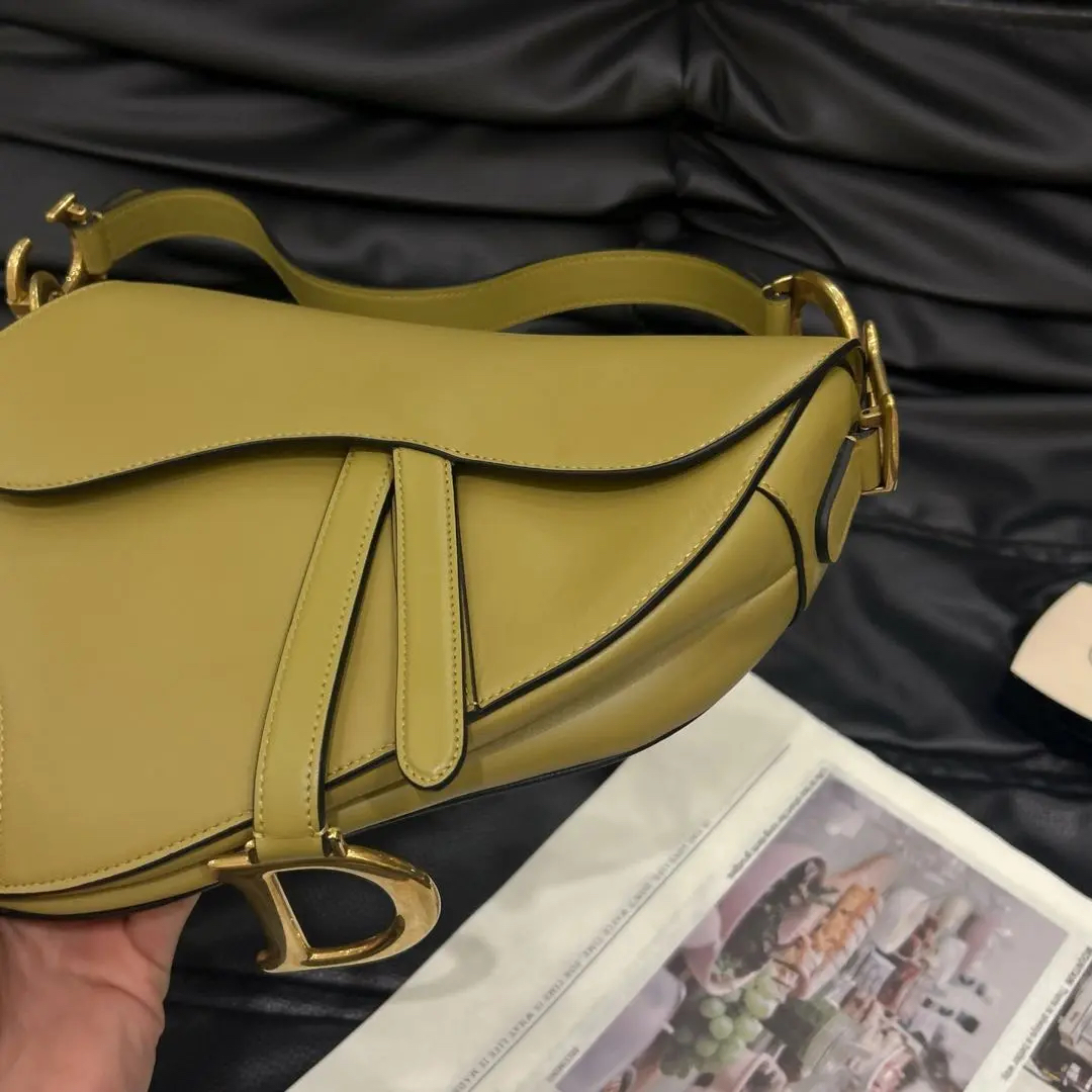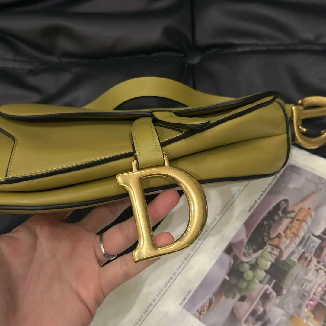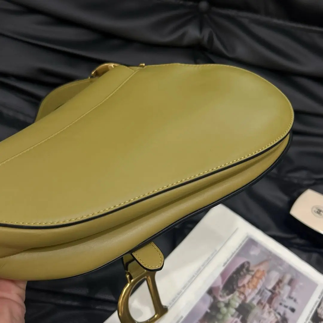 【商品详情】正品二手 Dior Saddle box牛皮 芥末黄 马鞍包🐎97新 24*21 配件:说明书 防尘袋。芥末黄配色超吸睛 质感满分