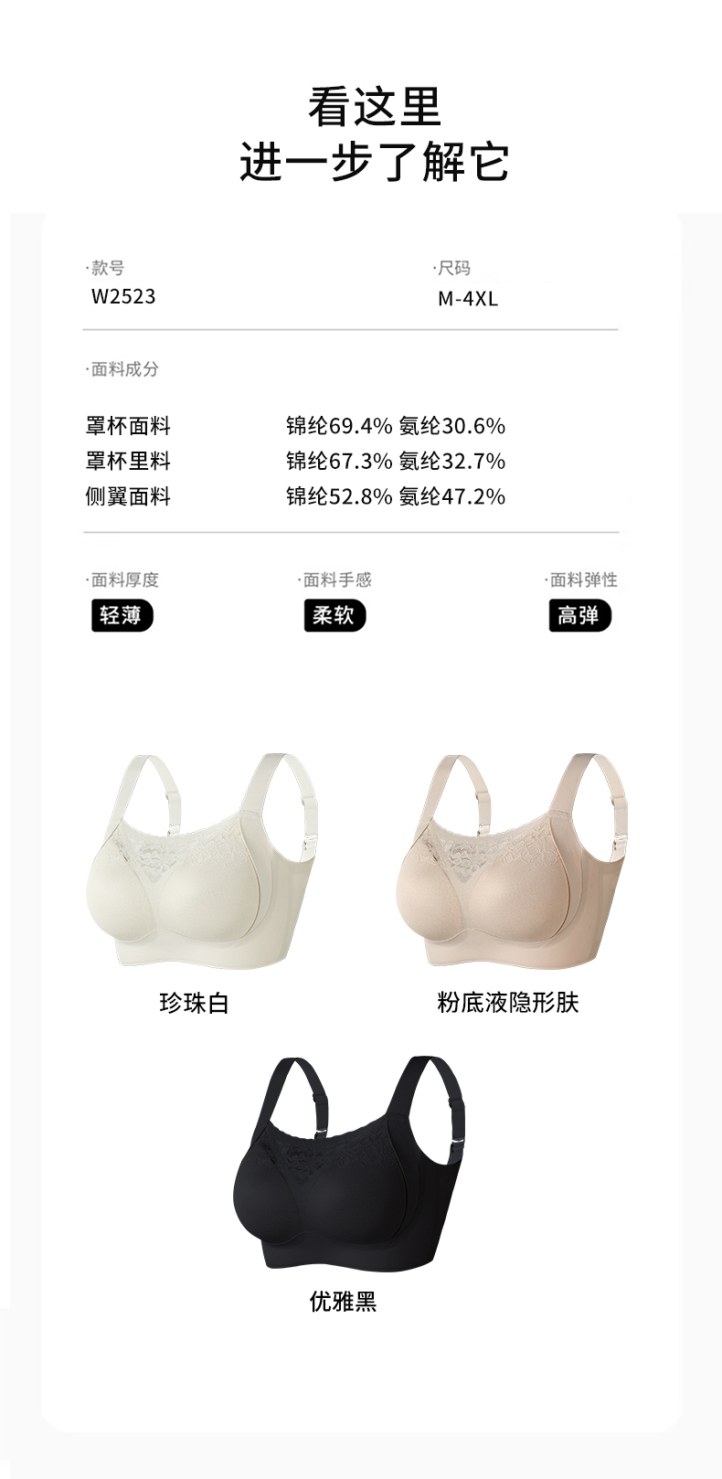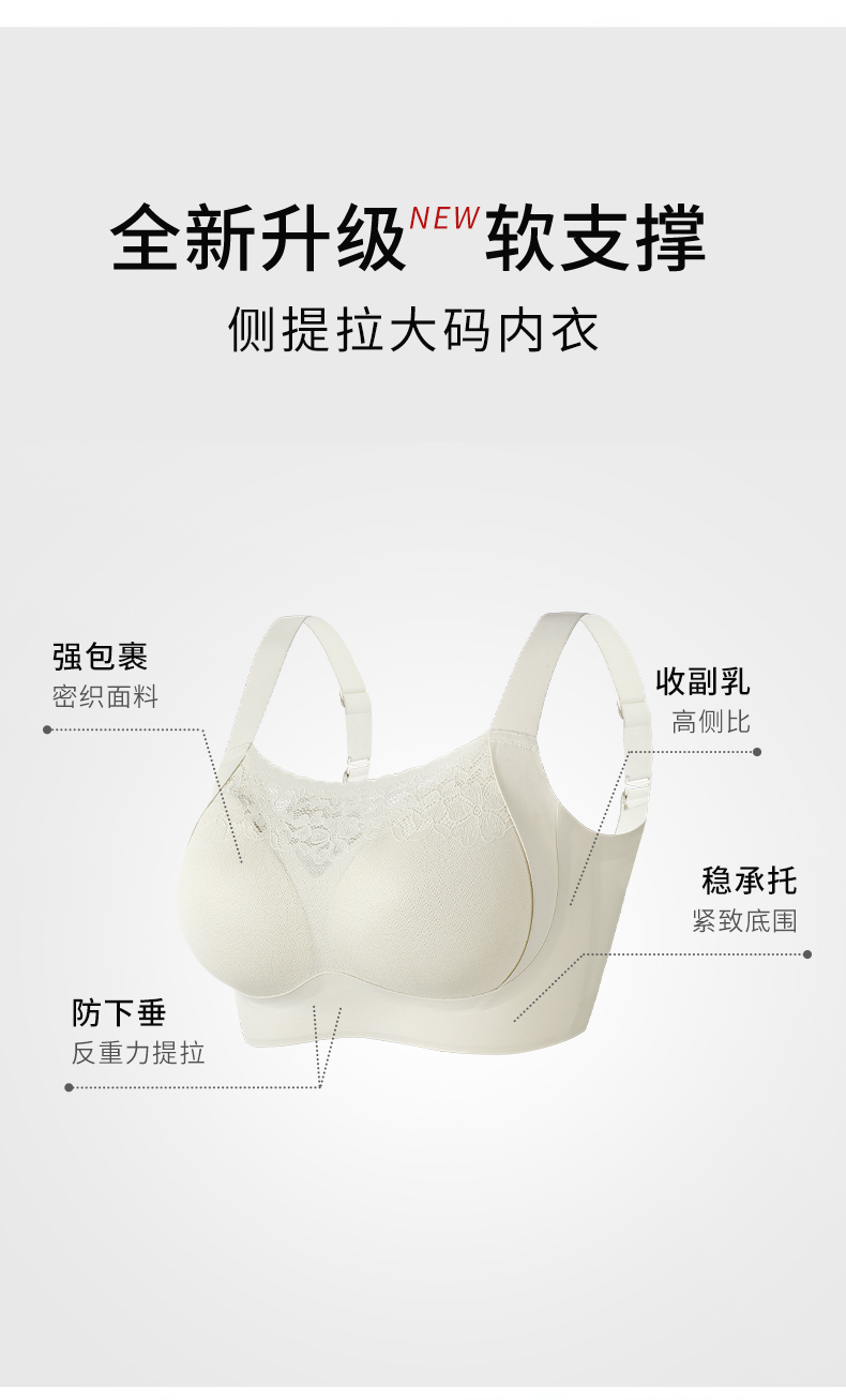 2026年新款蕾丝抹胸侧提拉性感大码内衣-W2523#【组合需要自选颜色可联系客服备注】
