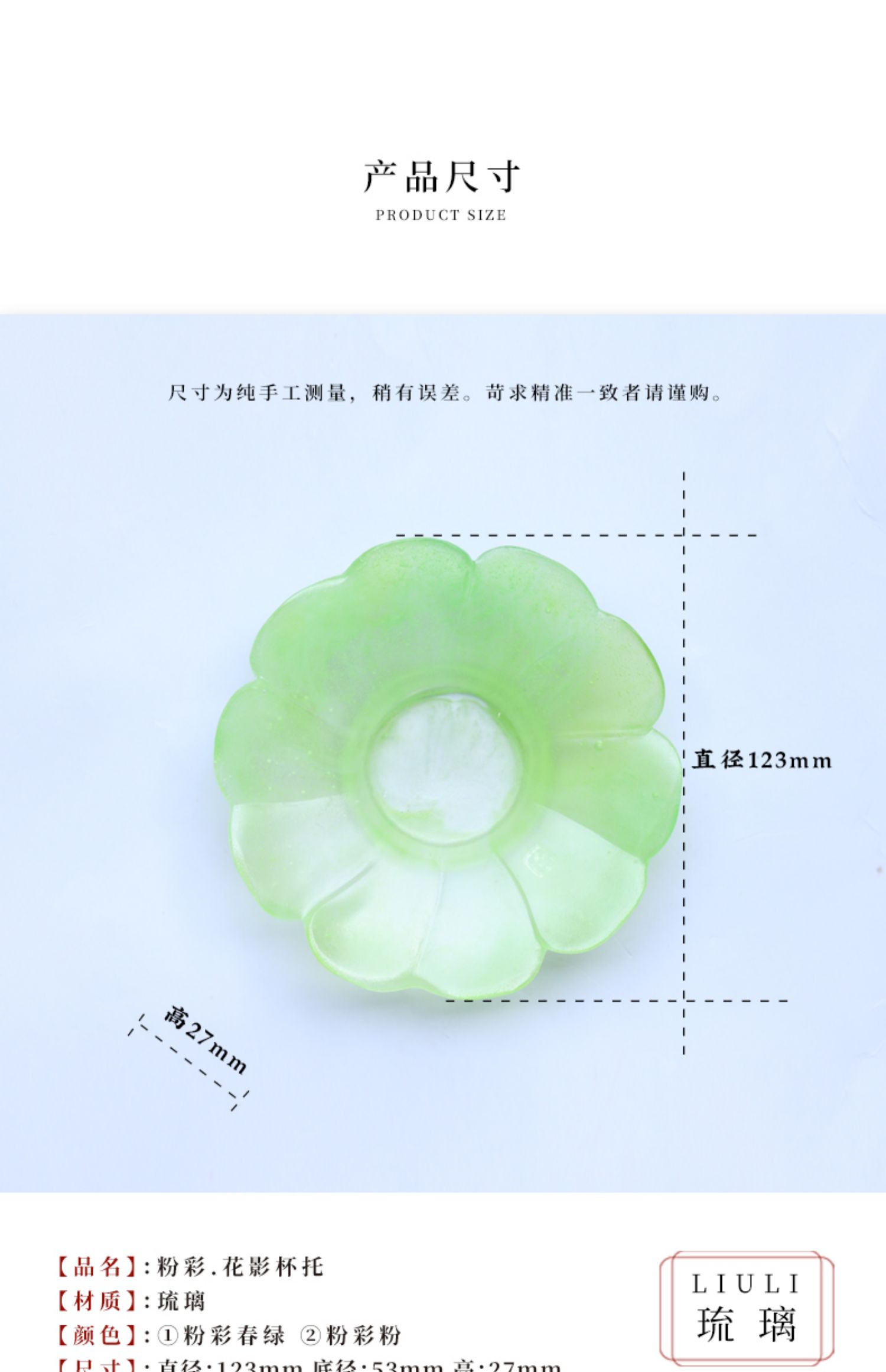 心缘堂琉璃 粉彩绿花影杯托仙女系列茶席置景配件
