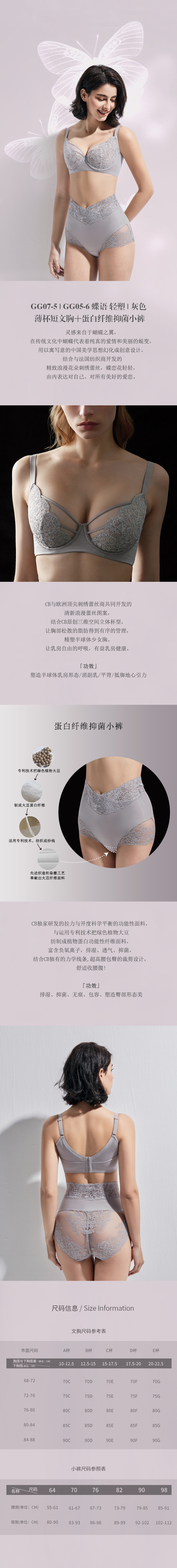 CB | 蝶语轻塑灰色薄杯短文胸&高腰美臀小裤