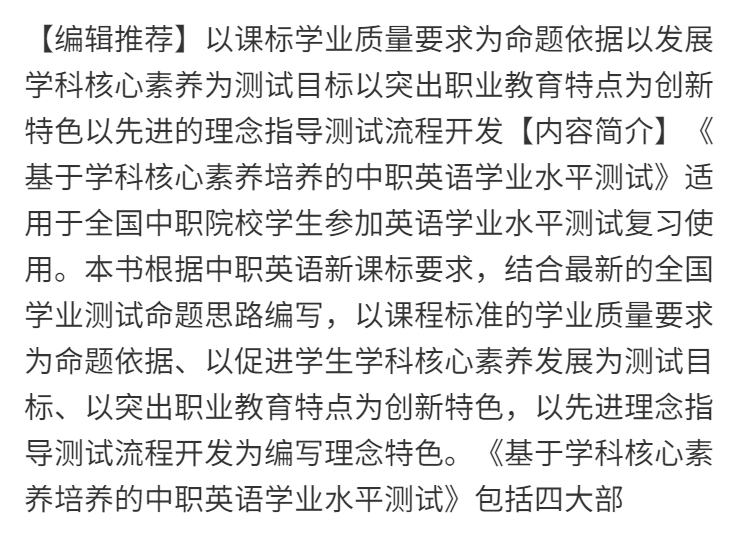 基于学科核心素养培养的中职英语学业水平测试