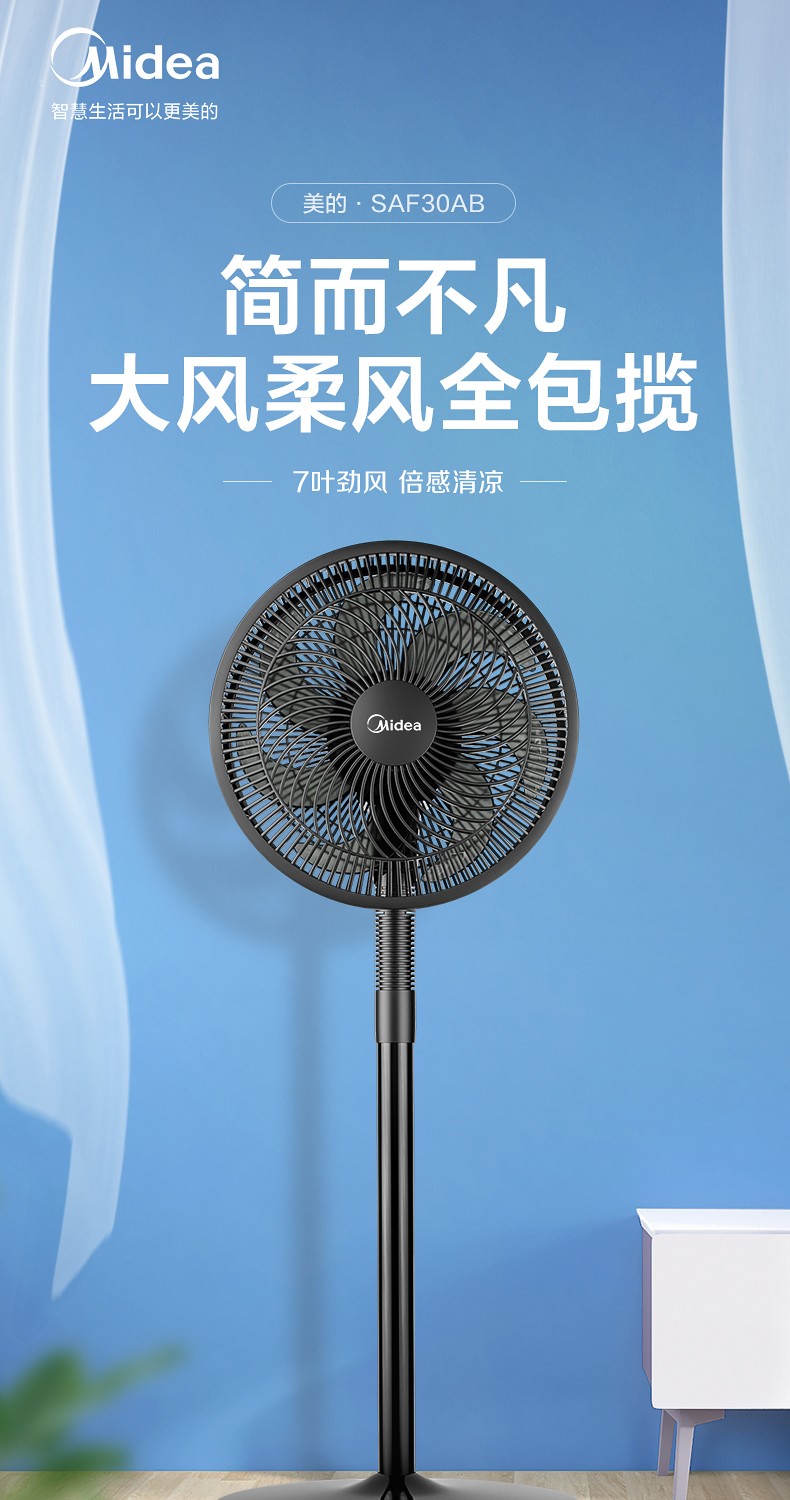 美的 7叶台立两用轻音电扇 SAF30AC
