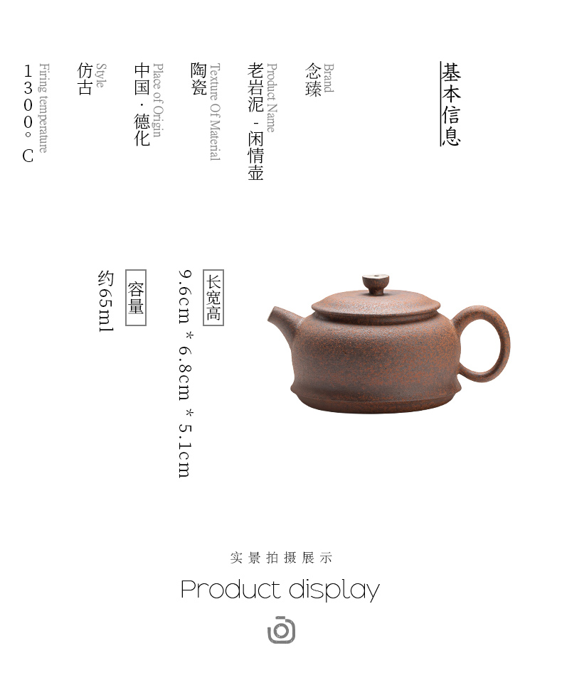 灰念 老岩泥闲情壶 容量65ml 长9.6cm*宽5.1cm*高5.1cm