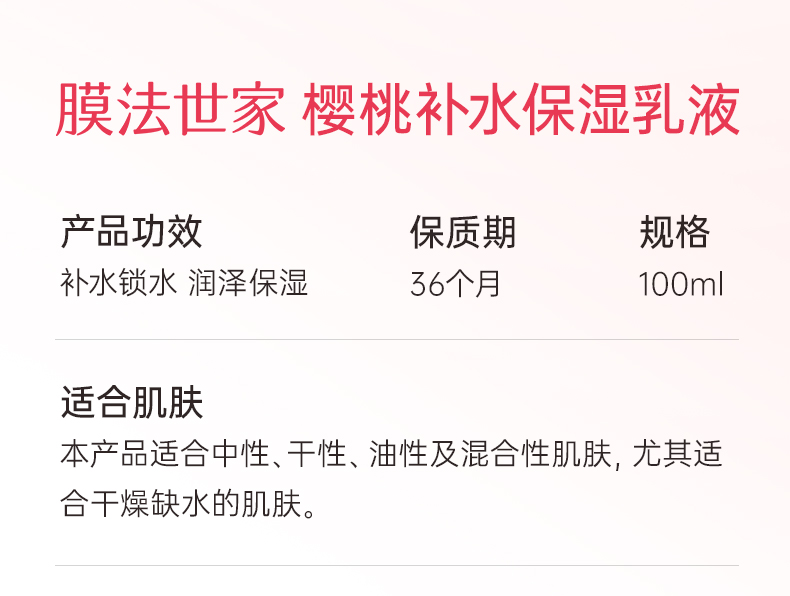 【柔润保湿】膜法世家樱桃补水保湿乳液100ml