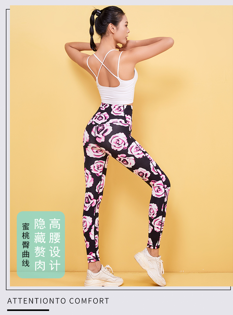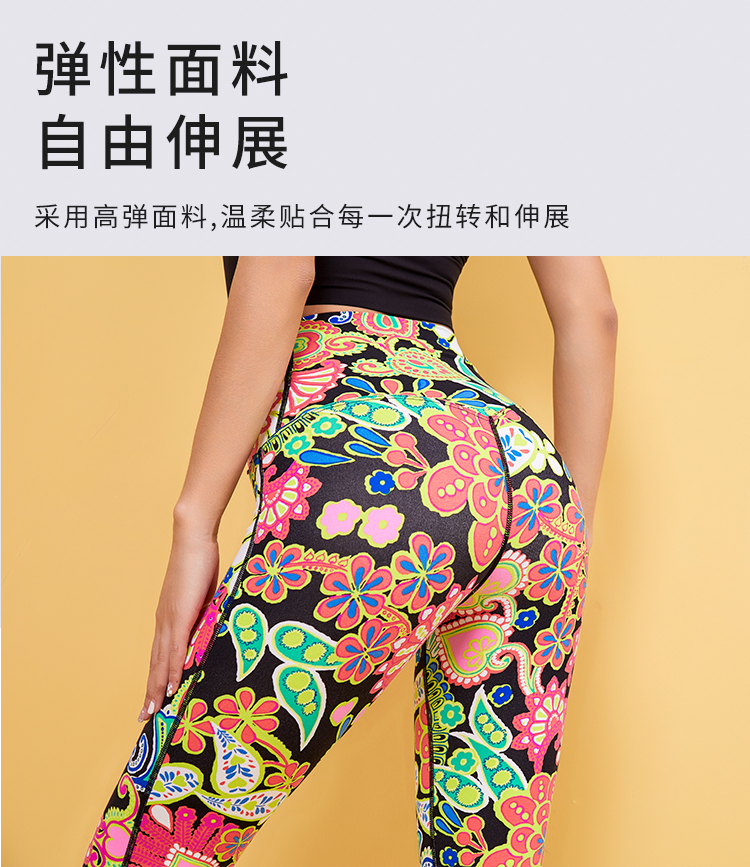《惊爆618 不退换》HWT 台湾进口加厚棉感面料花型九分户外运动瑜伽裤紧身裤
