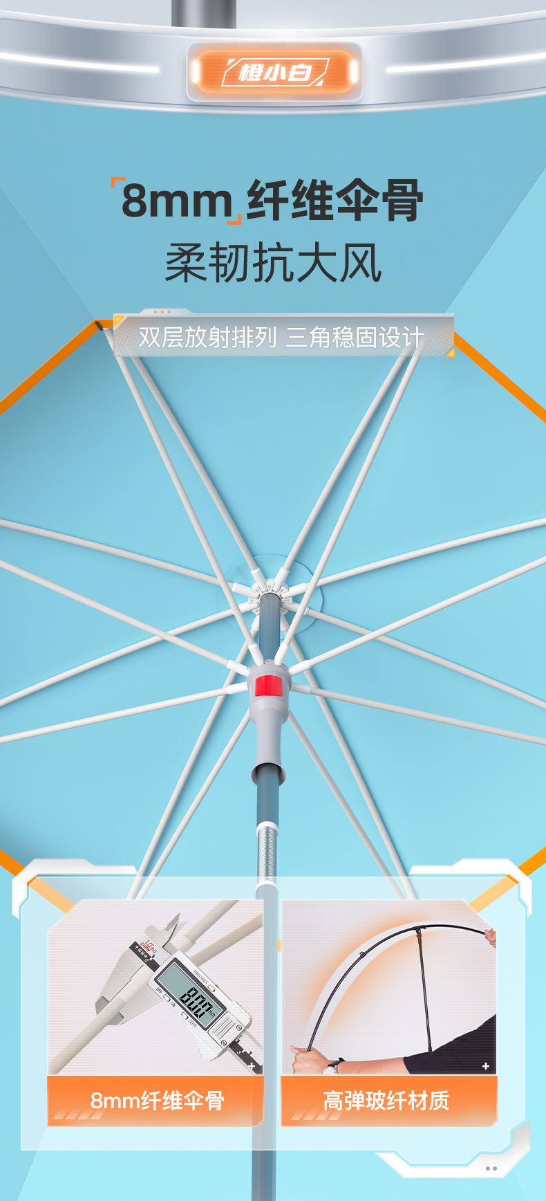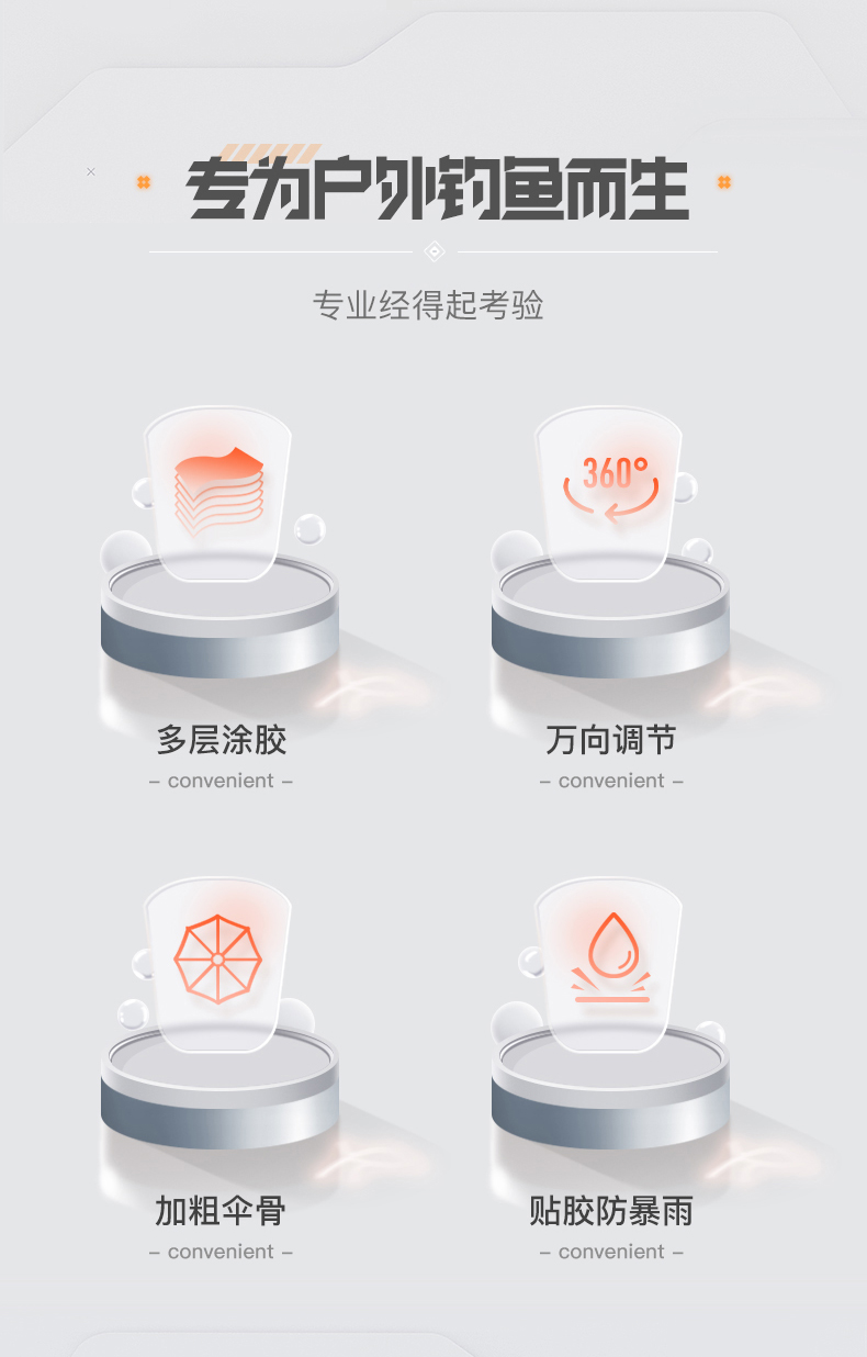 佳钓尼重磅新品橙小白拐杖伞轻便遮阳钓鱼加厚防晒垂钓遮阳抗风