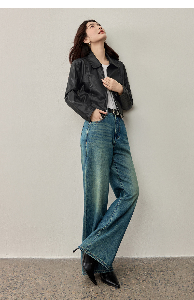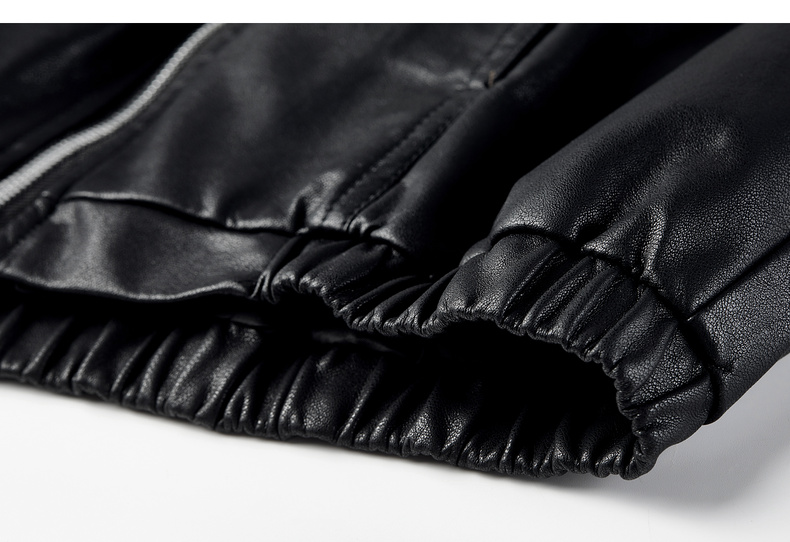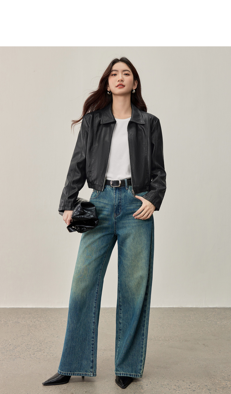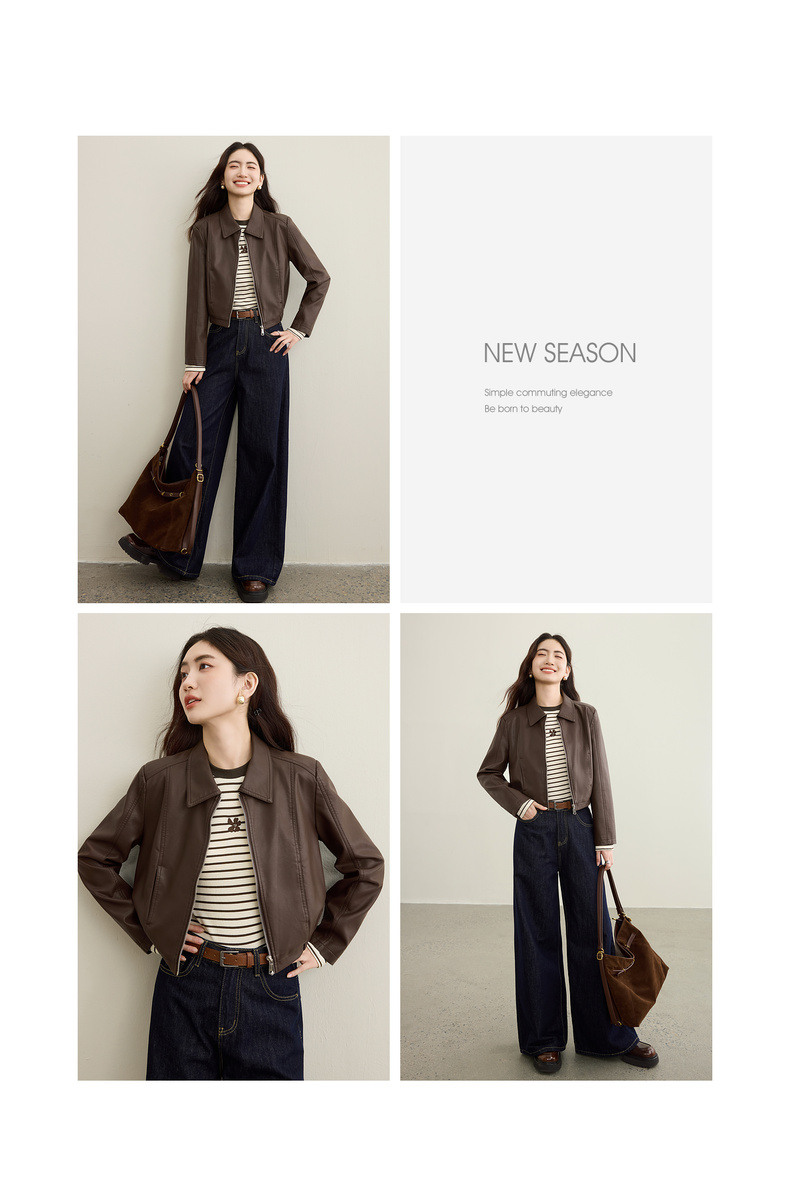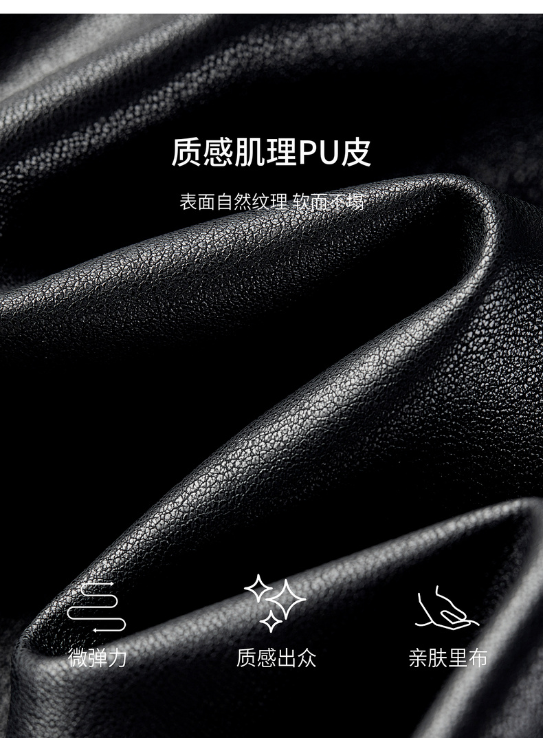 【内购】【松紧下摆】摩登都市通勤翻领金属拉链直筒长袖PU皮外套-W53GA2745
