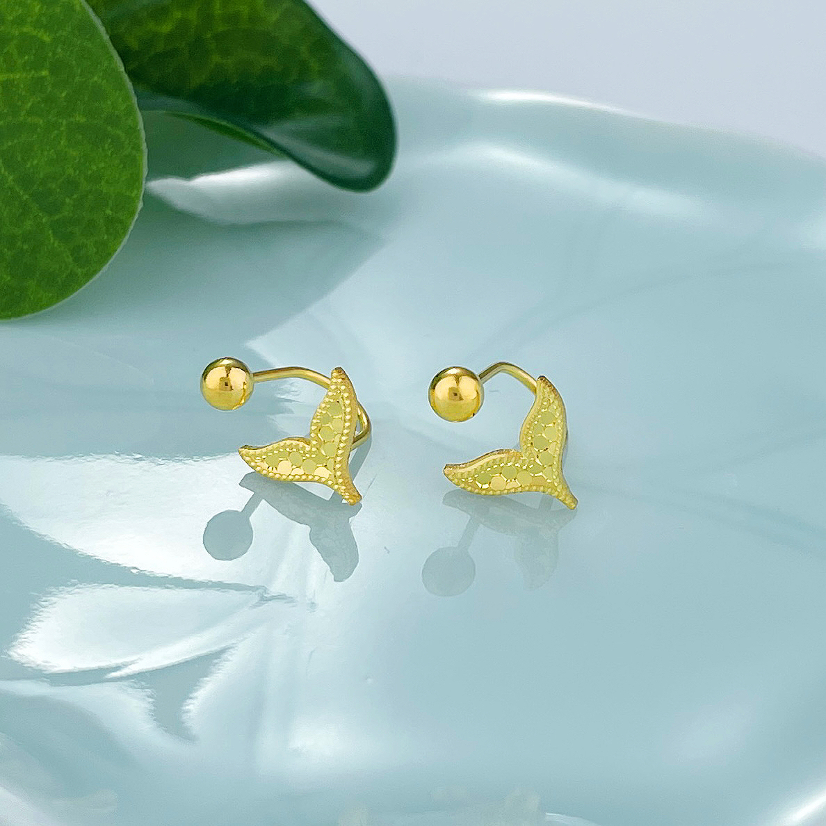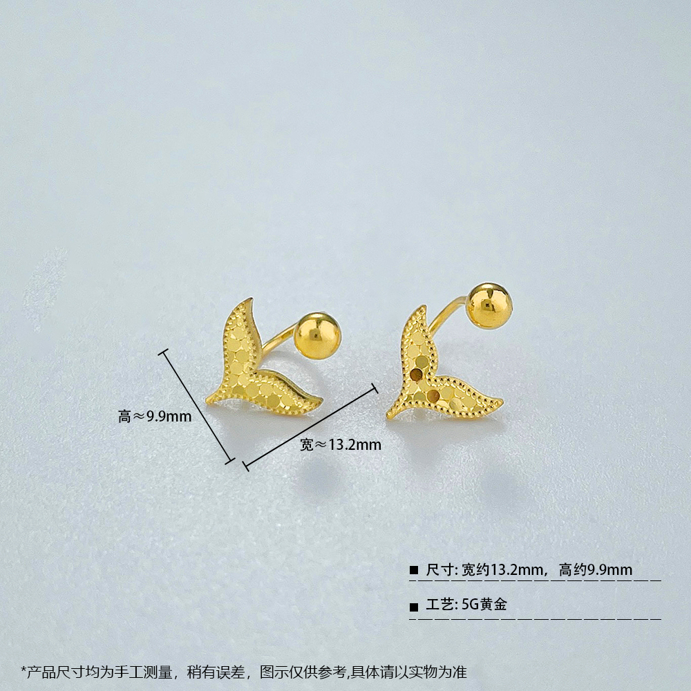 【限时克减150元】足金999 5G黄金鱼鳞鱼尾圆珠U形耳钉(AG5GES00099)(预售产品下单后不退款不退货不换货不补差价)(预售产品下单后不退款不退货不换货不补差价)