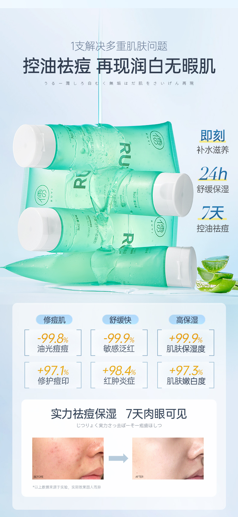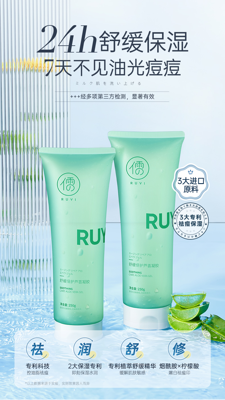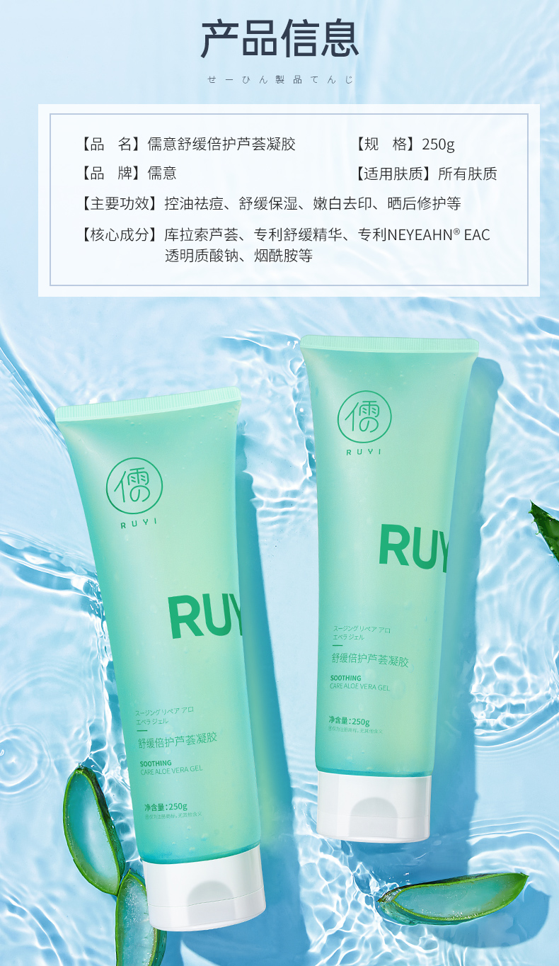 儒意舒缓倍护芦荟凝胶250g 补水保湿 祛痘印 膏淡化女男专用面霜修复凝胶 | 儒意官方商城