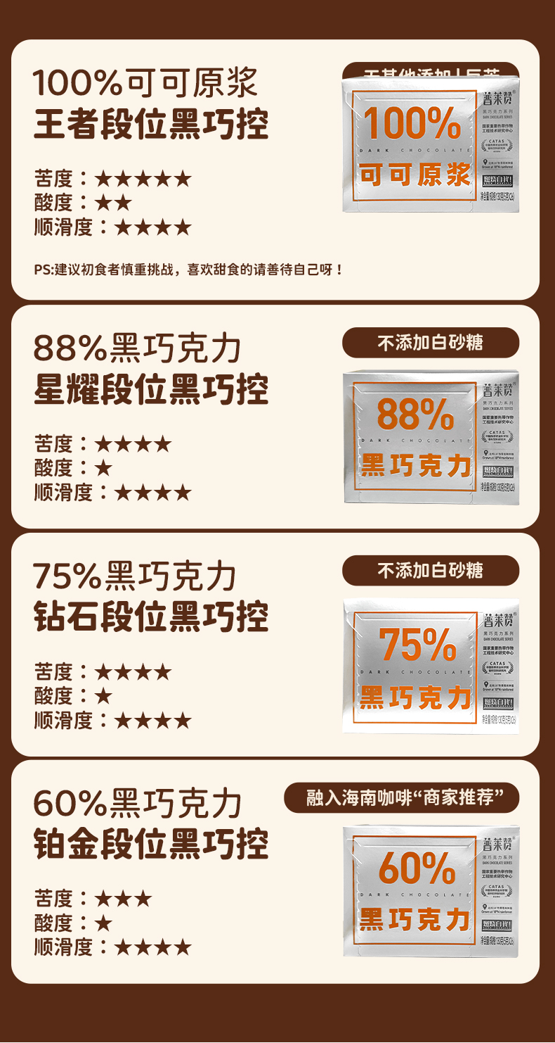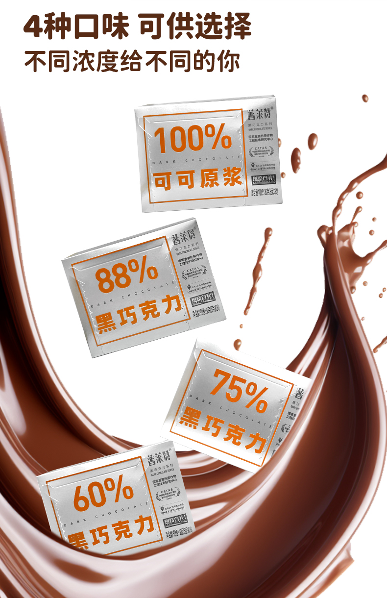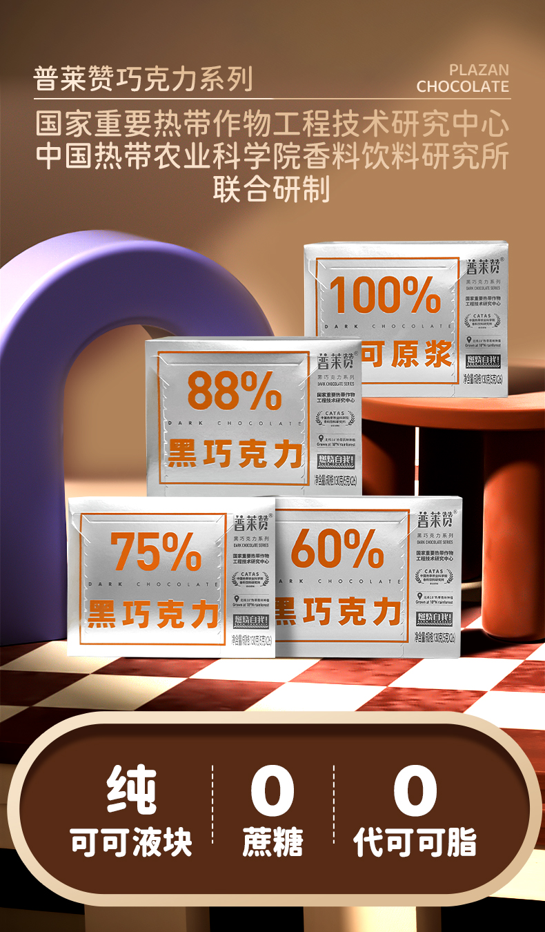 普莱赞黑巧克力130g/盒无添加蔗糖休闲零食