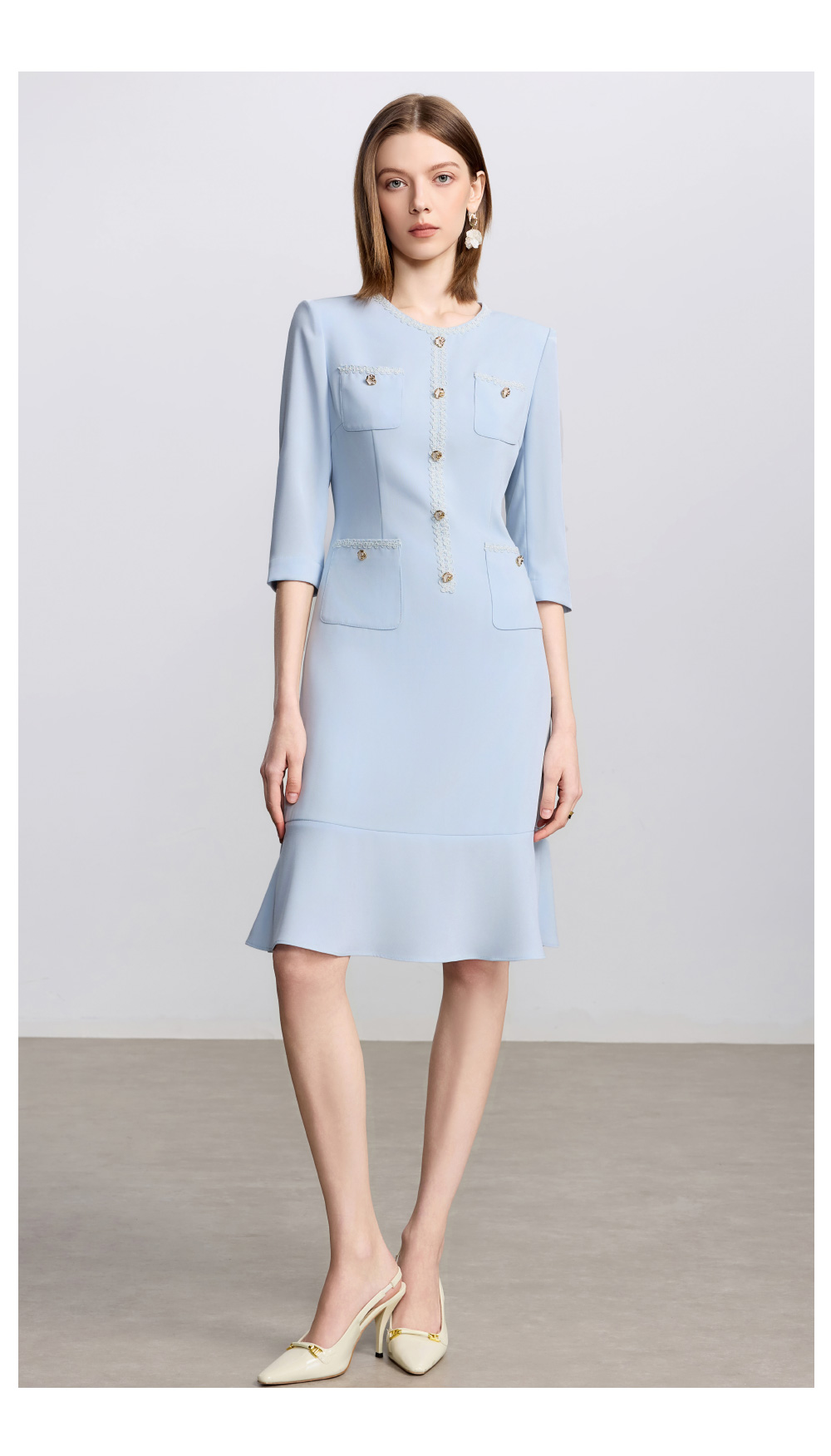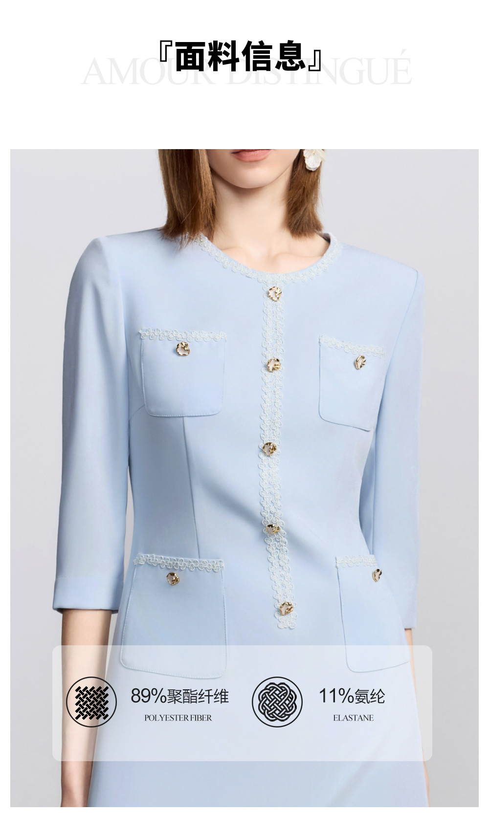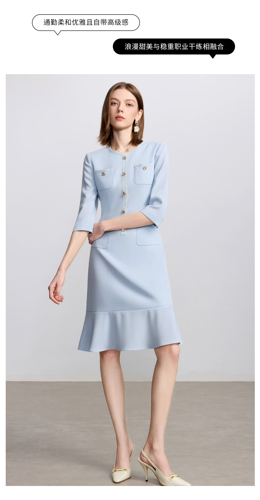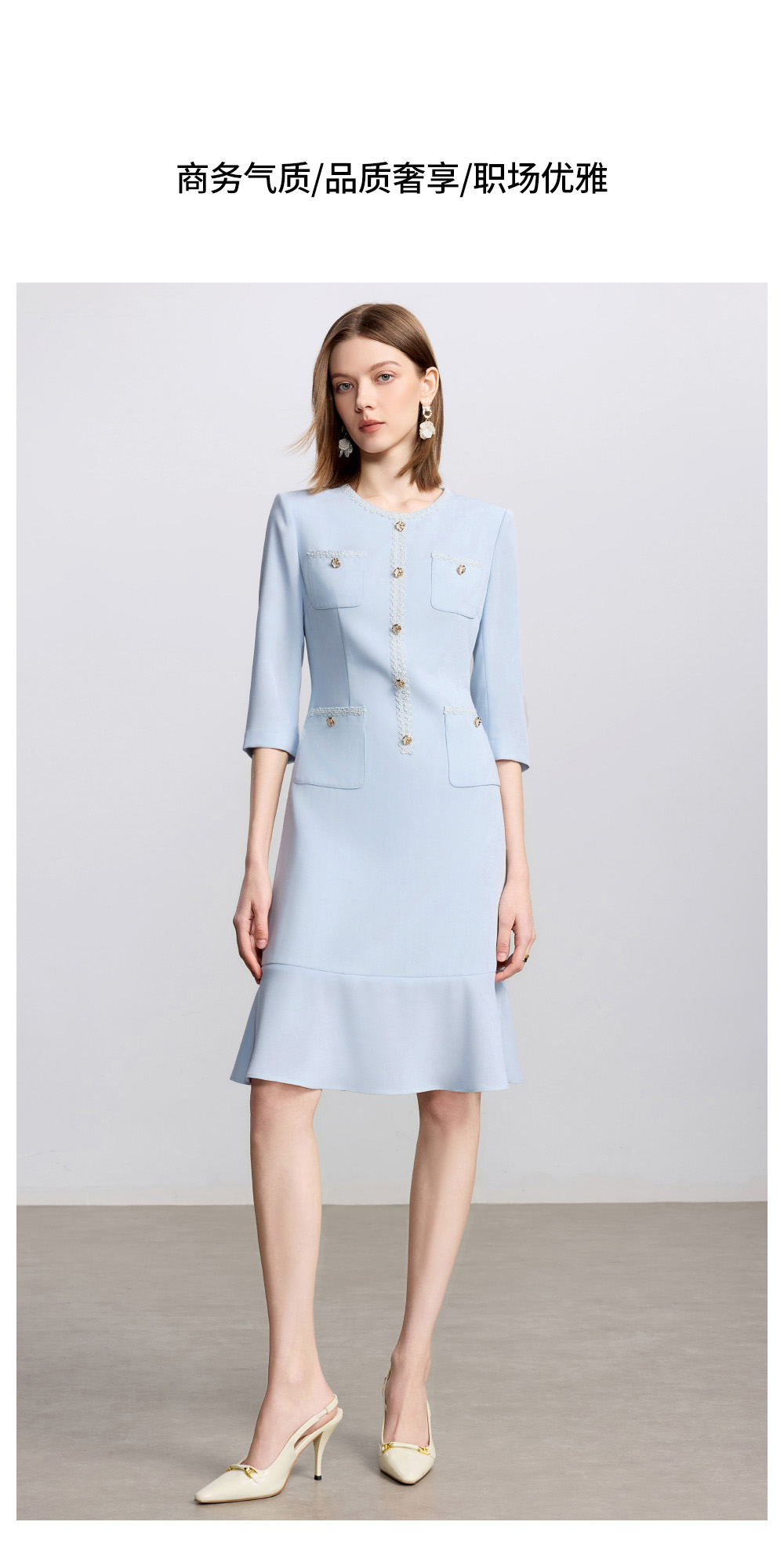 IWY/蓝色西装连衣裙女七分袖法式主持上镜职业裙装美容院上班接待正装Q1433