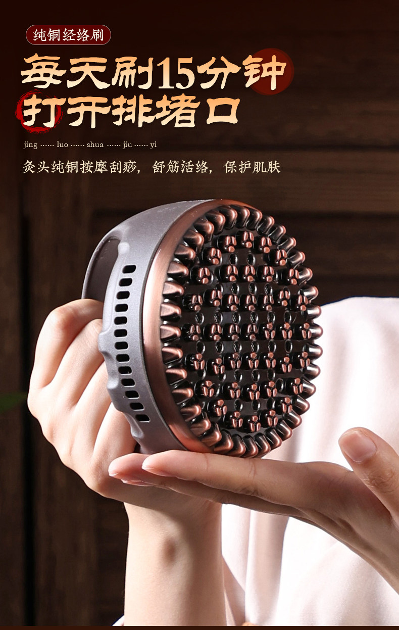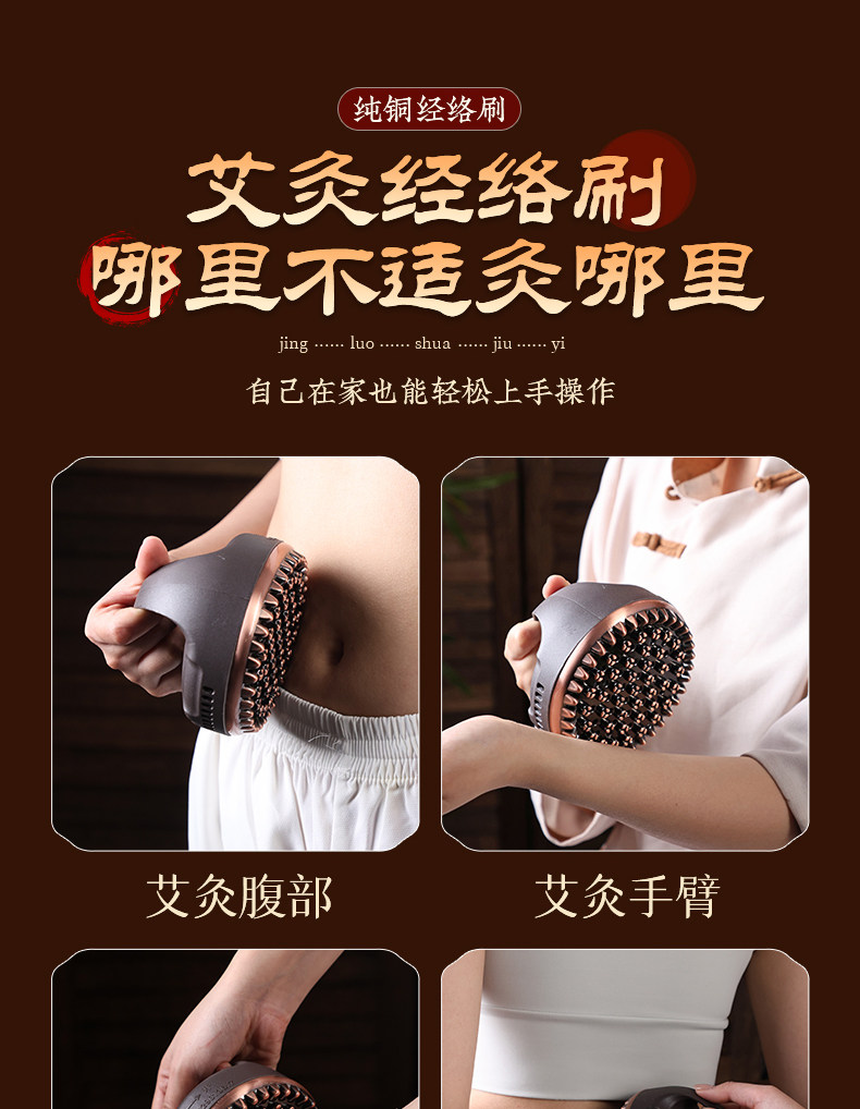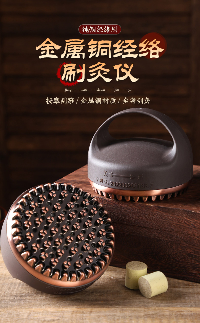新款【纯铜艾灸经络刷】金属铜艾灸器具推拿艾灸刮痧美容院养生馆专用美业全身SPA艾灸刷经络刷刮痧仪按摩腰腹背家用