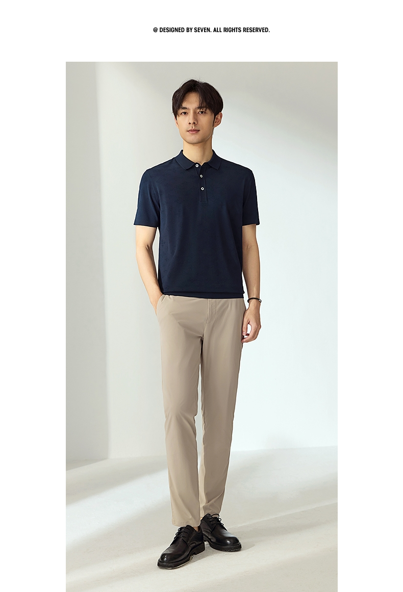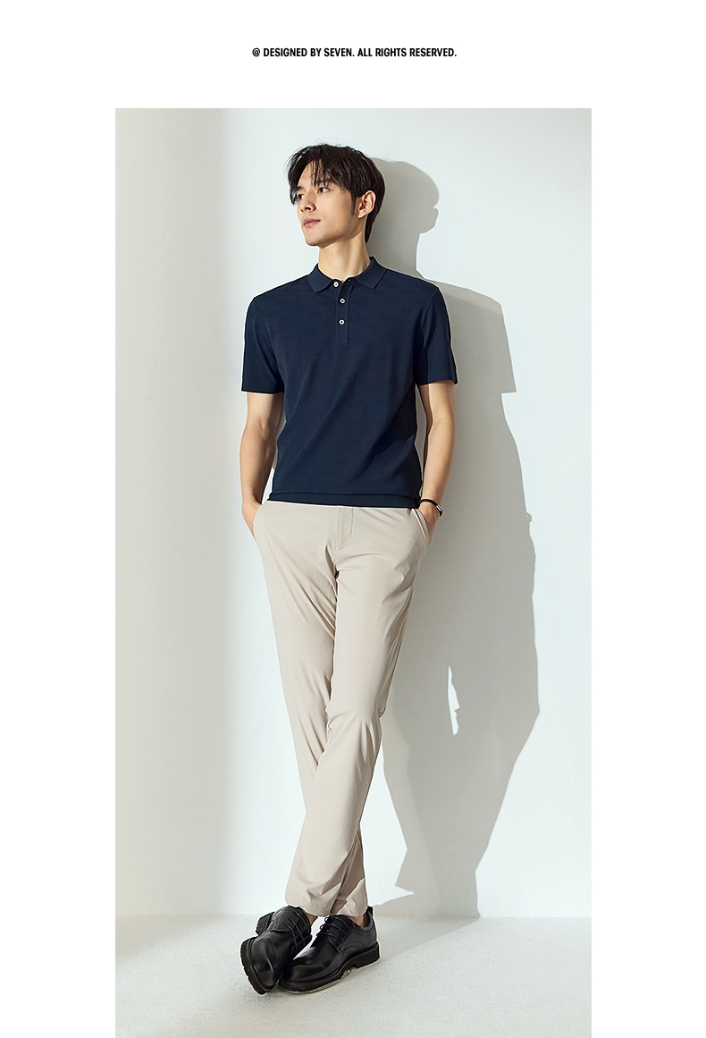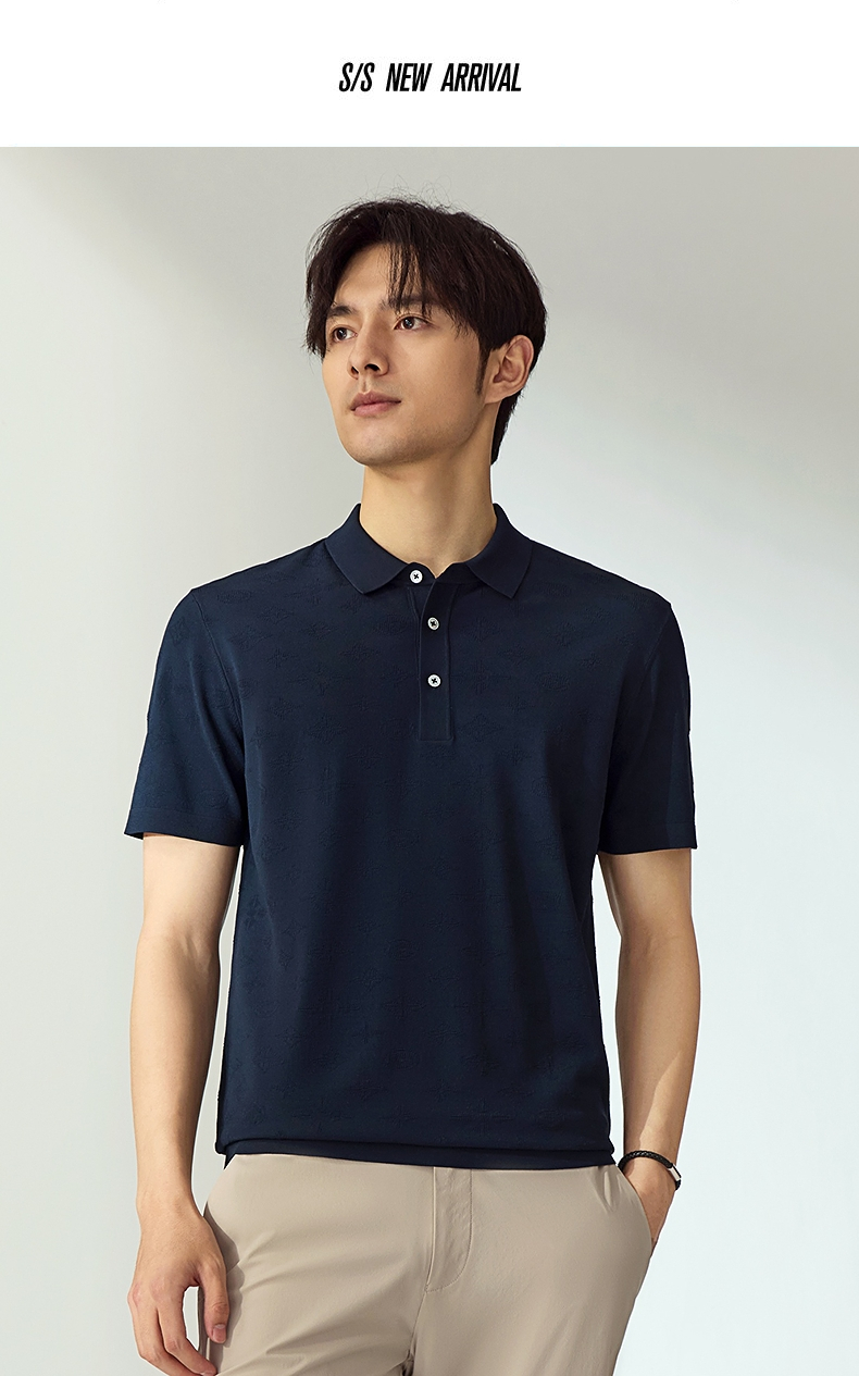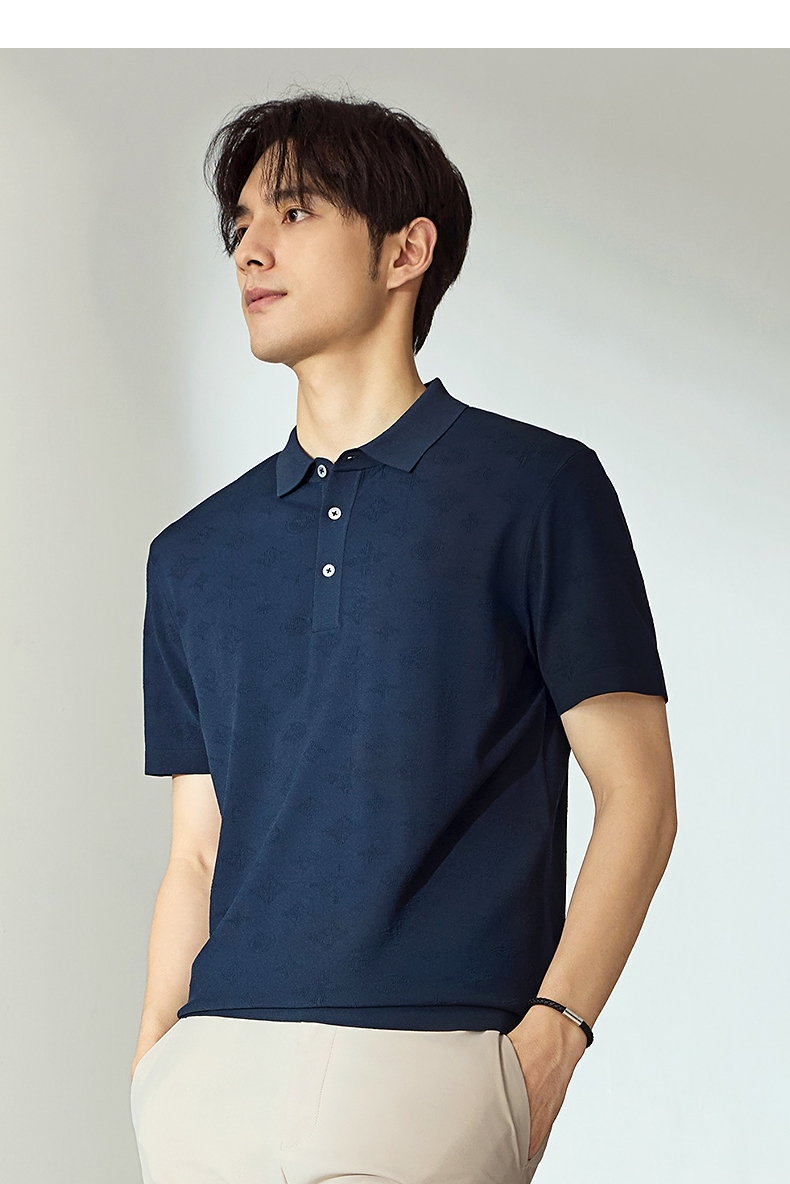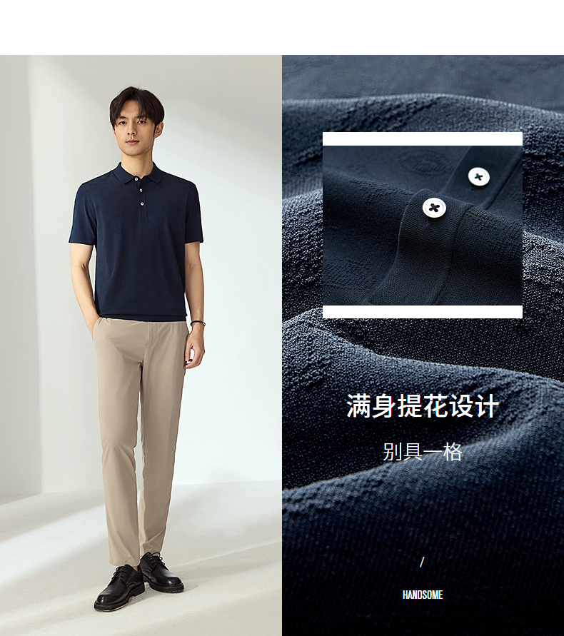 【高端系列】柒牌短袖POLO衫男士夏季新款满身提花伊力特翻领T恤128T71200