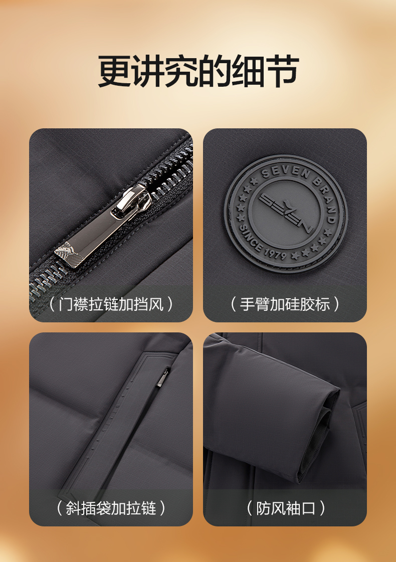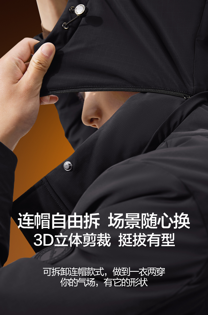 【黄金鲜羽绒】柒牌羽绒服可拆卸连帽男士厚款保暖羽绒外套129E70390