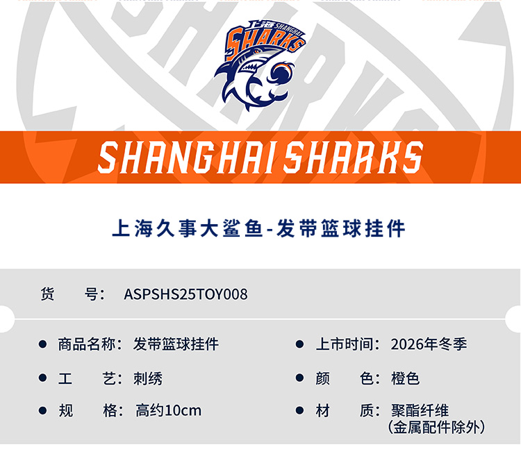 【官方正版】上海久事大鲨鱼俱乐部 | 毛绒发带篮球挂件可爱钥匙扣球迷周边