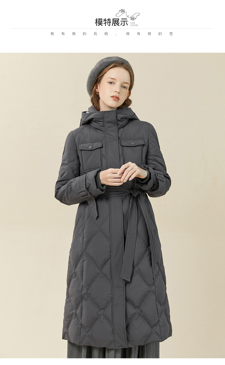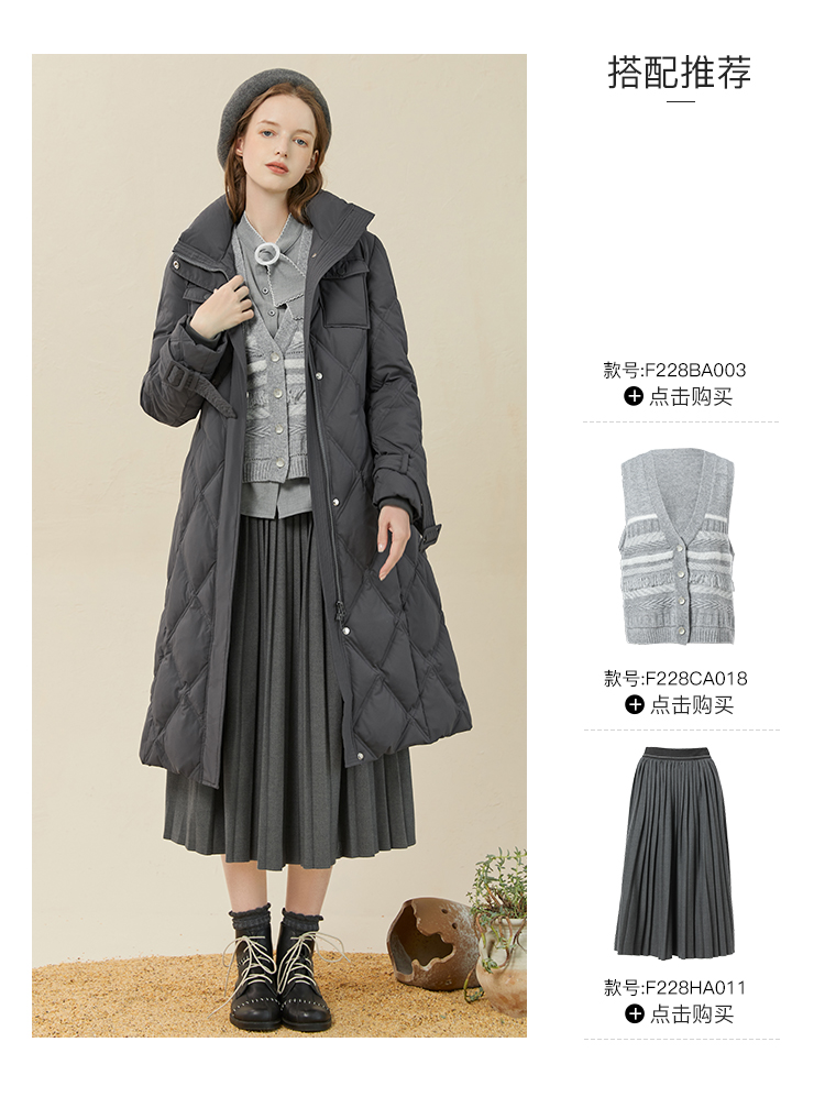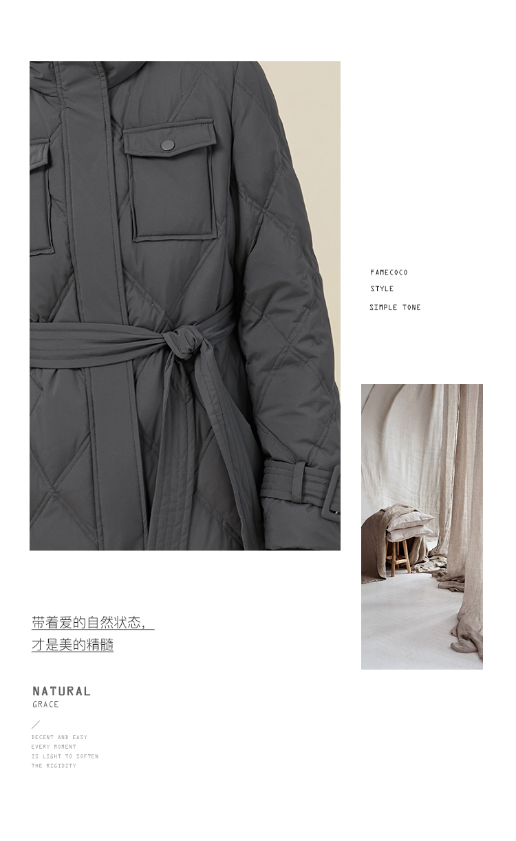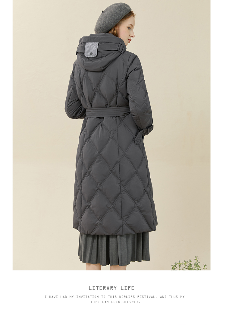 famecoco范可儿连帽羽绒服女中长款秋冬加厚保暖复古外套F228AH008