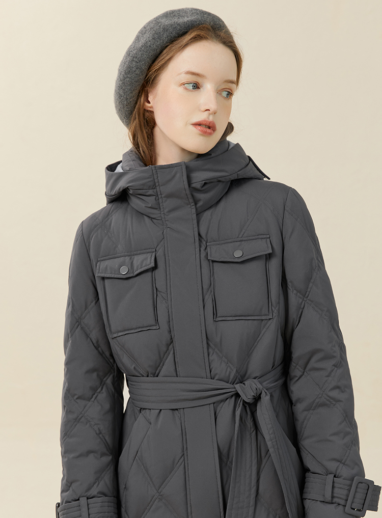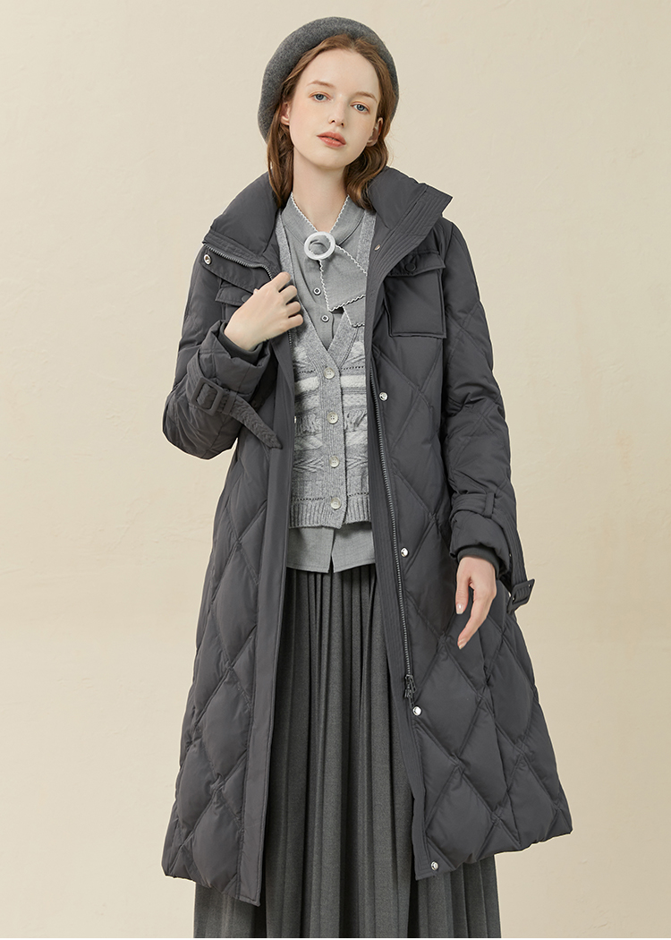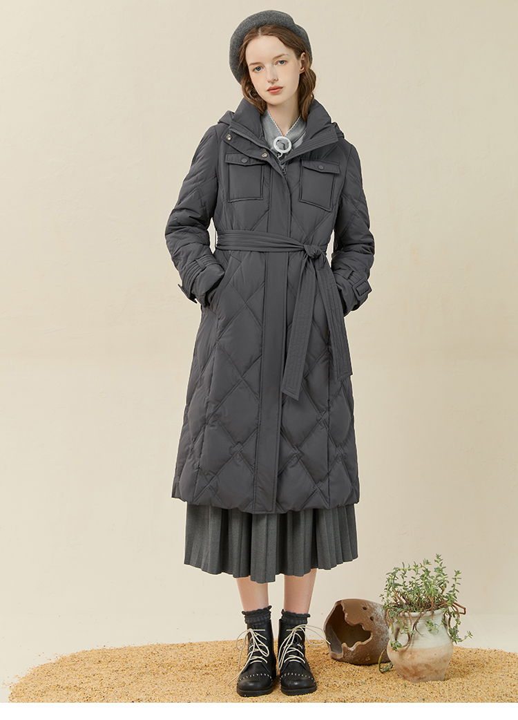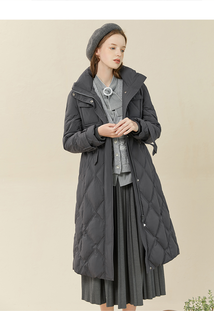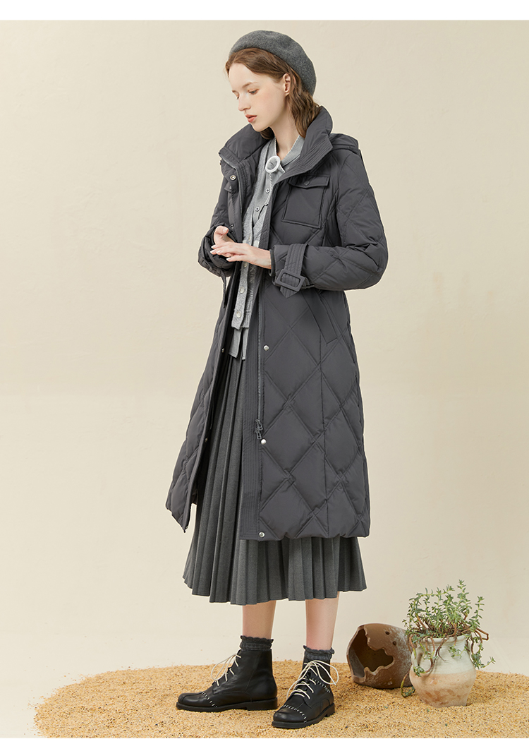 famecoco范可儿连帽羽绒服女中长款秋冬加厚保暖复古外套F228AH008