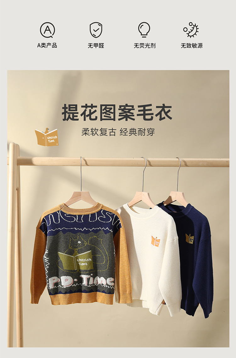 卡通背身提花图案毛衣PQMY2212