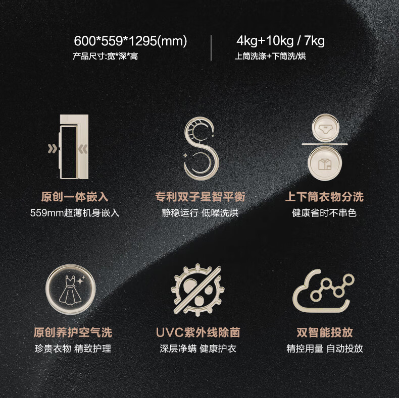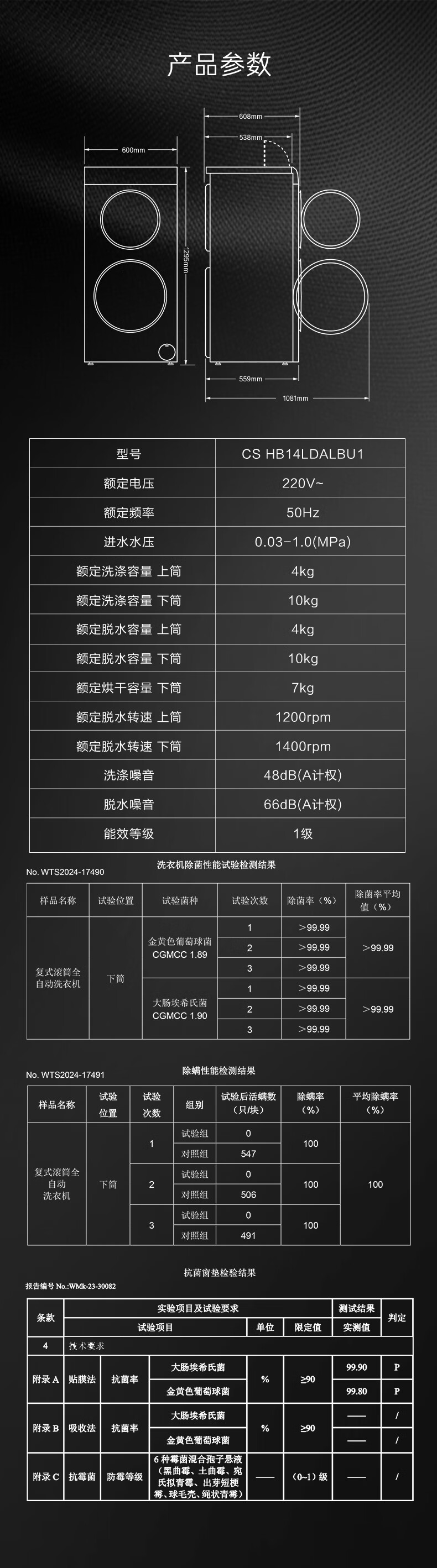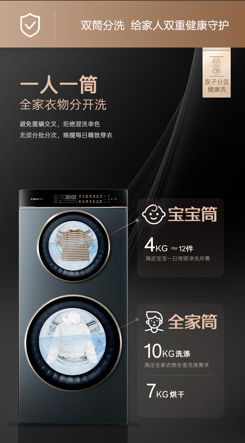 卡萨帝(Casarte)揽光14LB双子分区滚筒洗衣机全自动家用14公斤洗烘一体机子母双筒直驱变频CS HB14LDALBU1