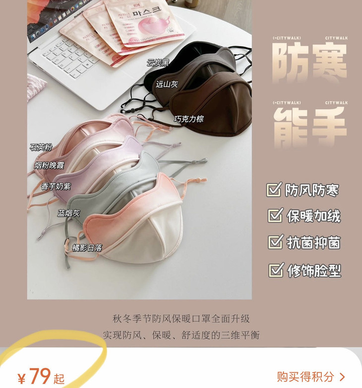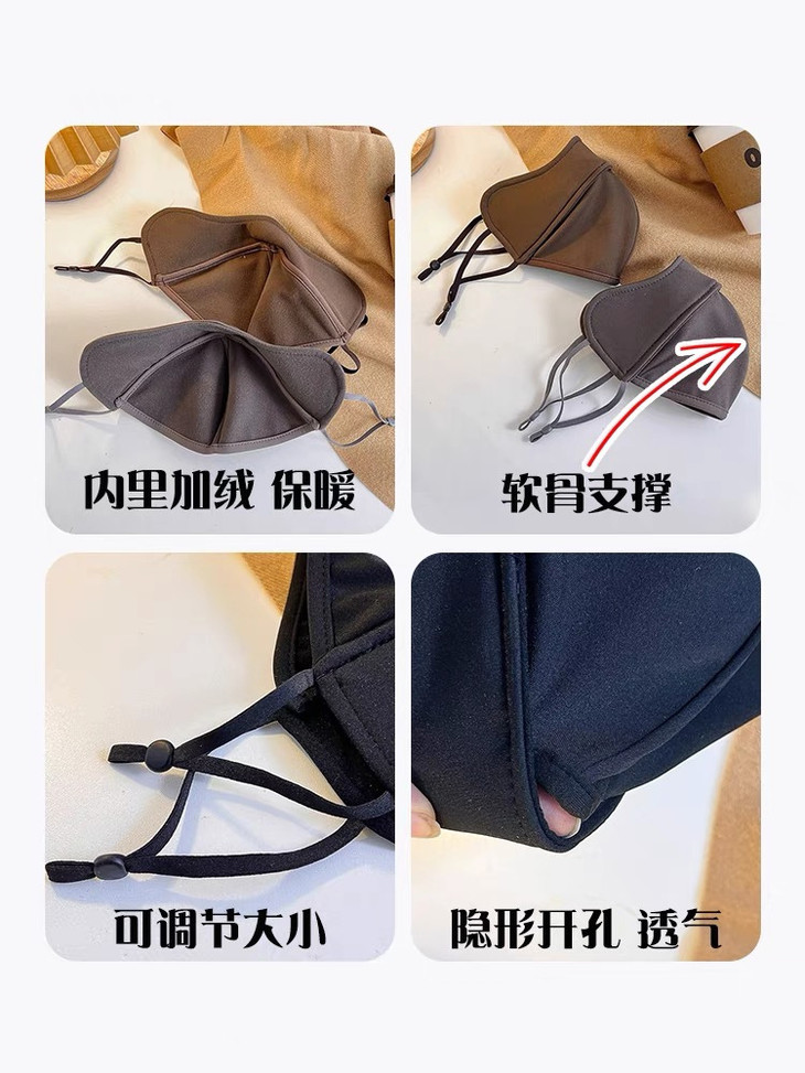 对于我们这种骑车通勤的早8人来说 保暖的口罩真的救大命了!! 戴着还不会蹭妆沾口红诶挂耳也是可调节的~ 外层防寒面料,内里细腻暖绒,戴上❸秒升温,出门像拿热毛巾捂着脸,秋冬日常骑车保暖很够用,不会冻脸戴着完全感受不到风往脸上吹!!