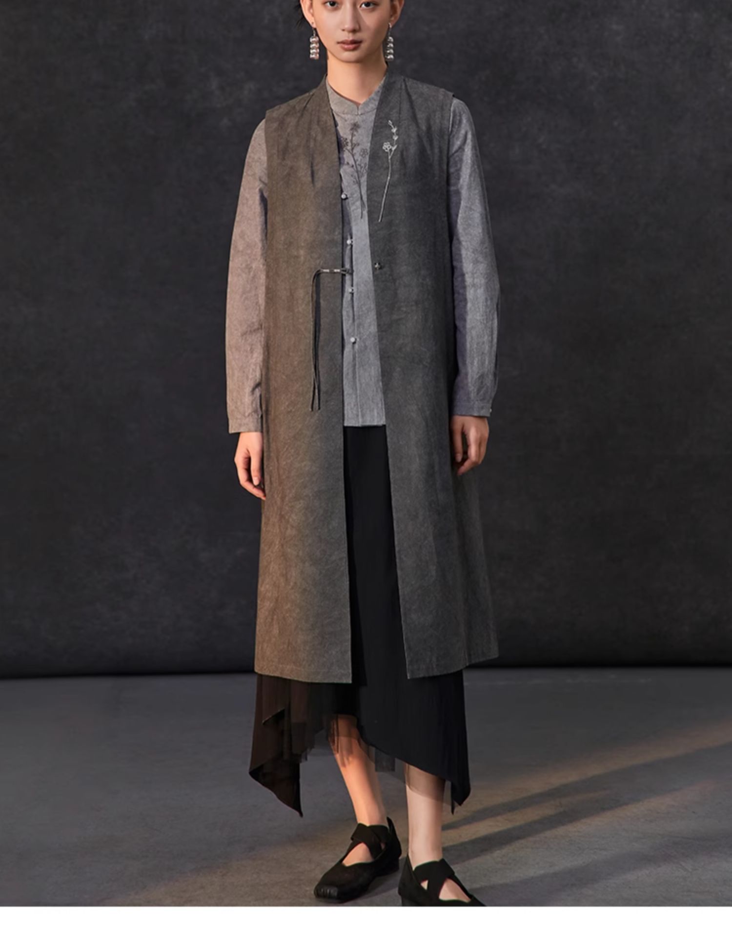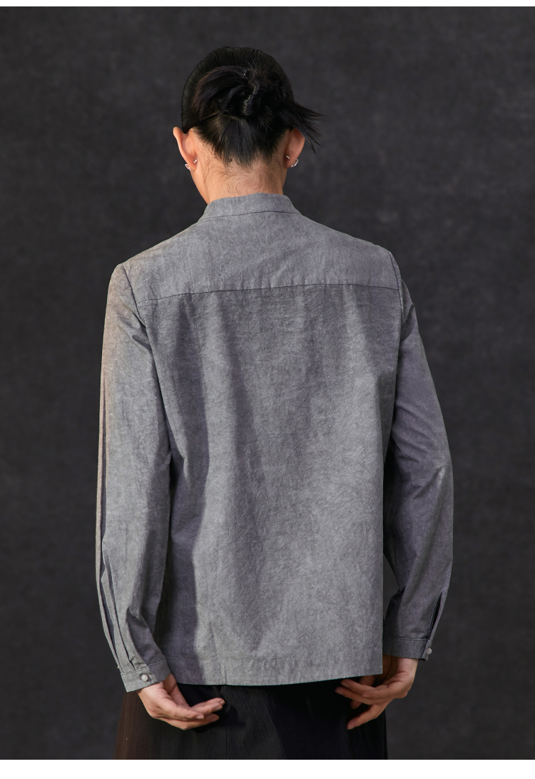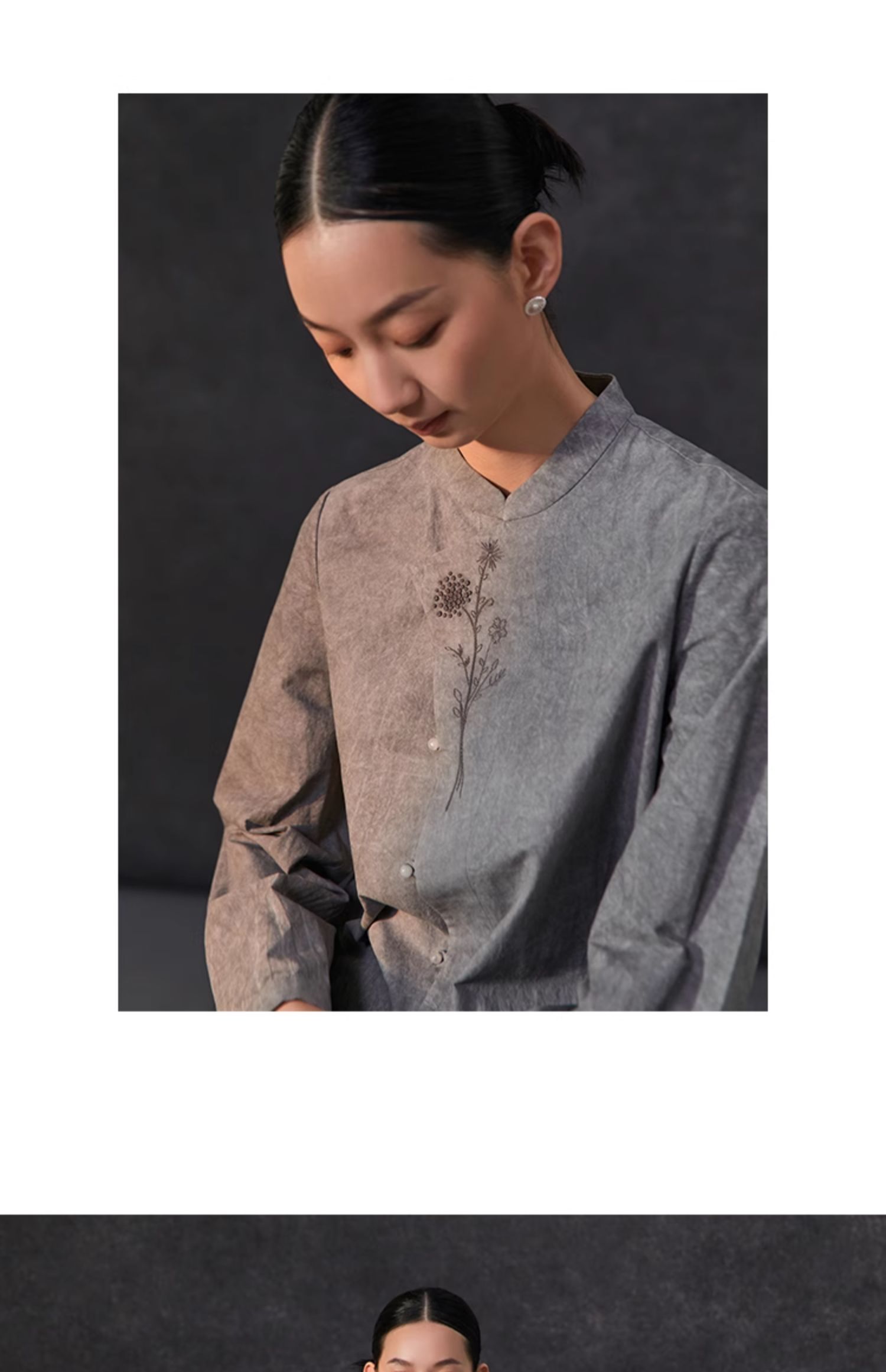 Famecoco复古新中式立领手工花朵刺绣衬衫女棉长袖衬衣FAC1BA001