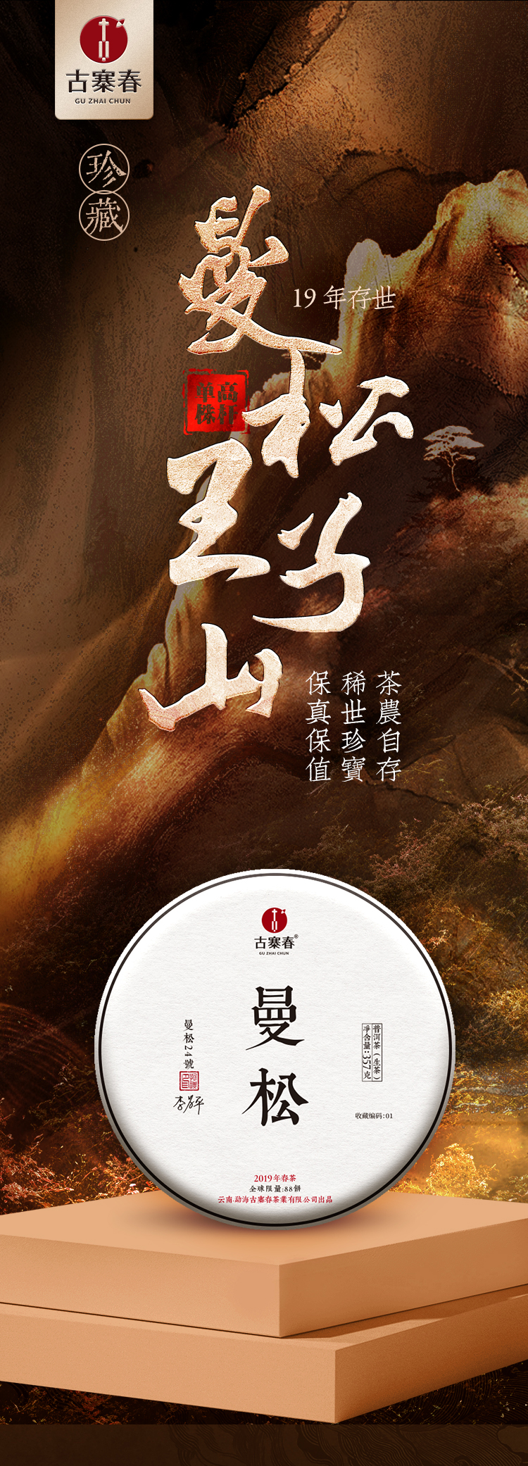 【整提五饼】【茶农自存曼松】2019年曼松王子山高杆单株,稀世珍宝 皇家贡茶曼松; 357克/饼,无铜盒