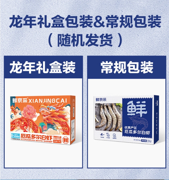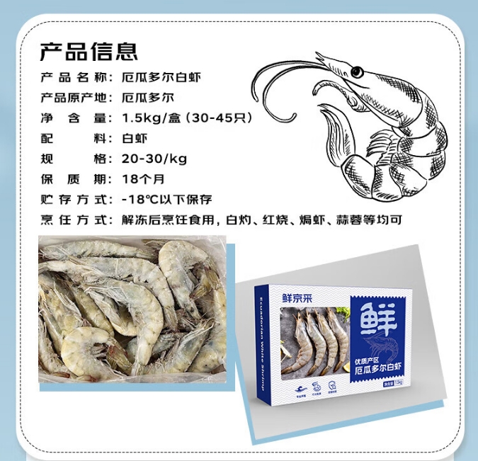 厄瓜多尔白虾1.5kg/盒 特大号20-30规格 单冻