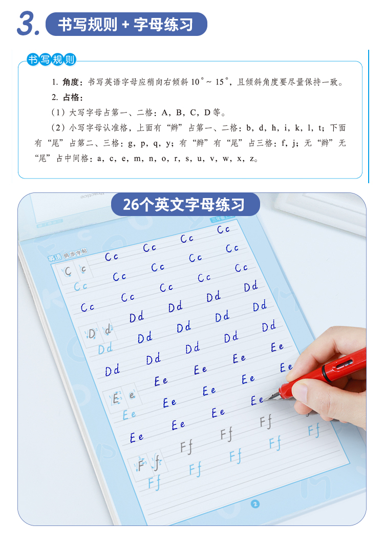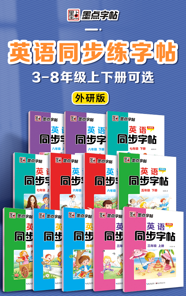 墨点2025外研版三年级英语字帖意大利斜体练字帖三四五六年级上册下册同步课本英文字母单词小学生初中生练字暑假作业初中七八年级