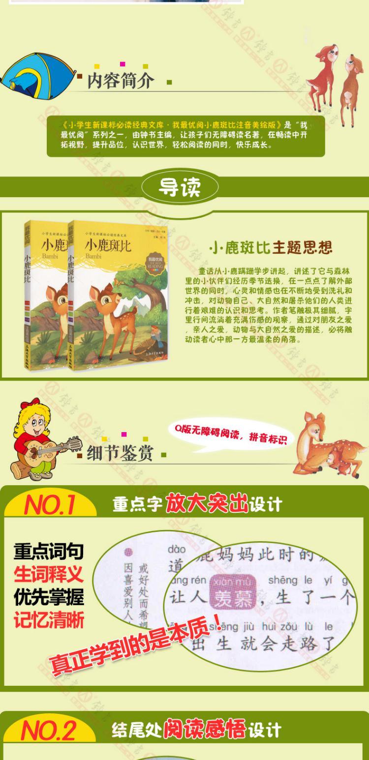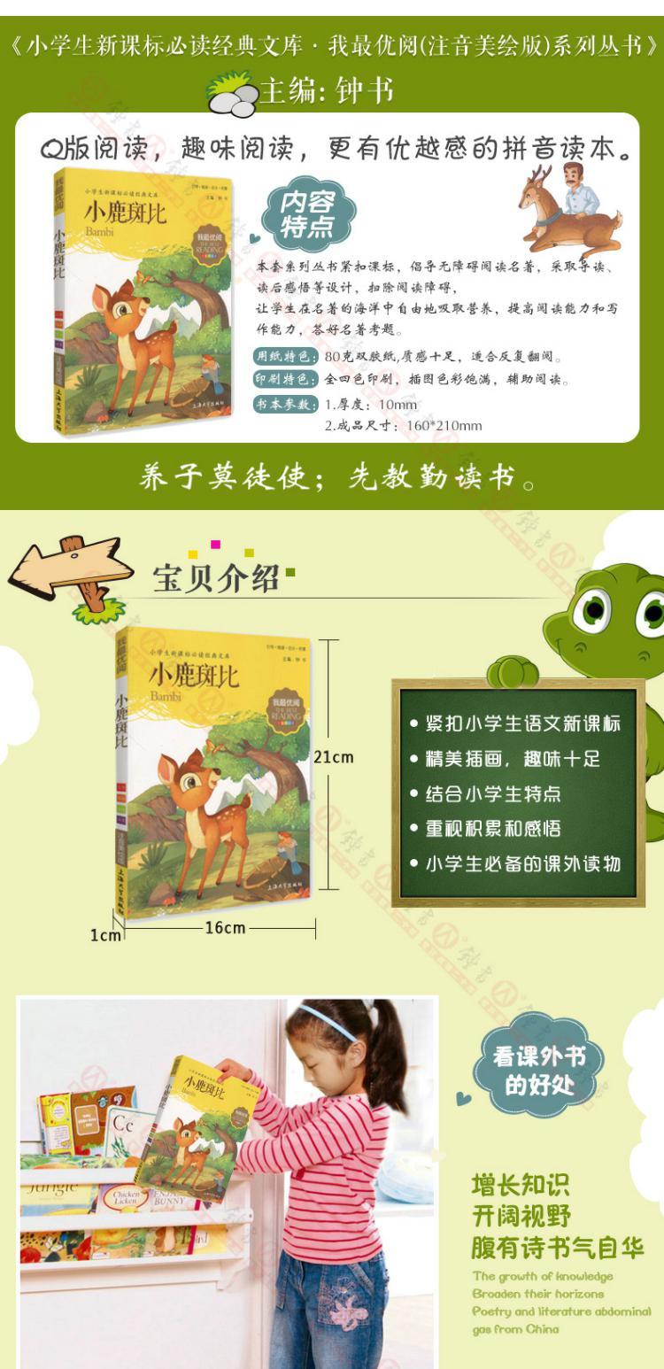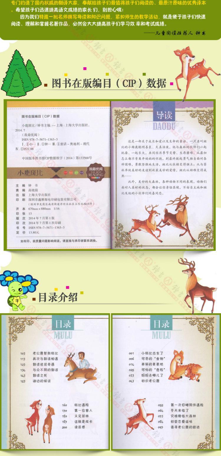 1-3年级适用 注音美绘版-小鹿斑比 钟书正版少儿读物我优阅系列拼音彩图版小鹿斑比 儿童文学课外读物小学生作文阅读写作能力