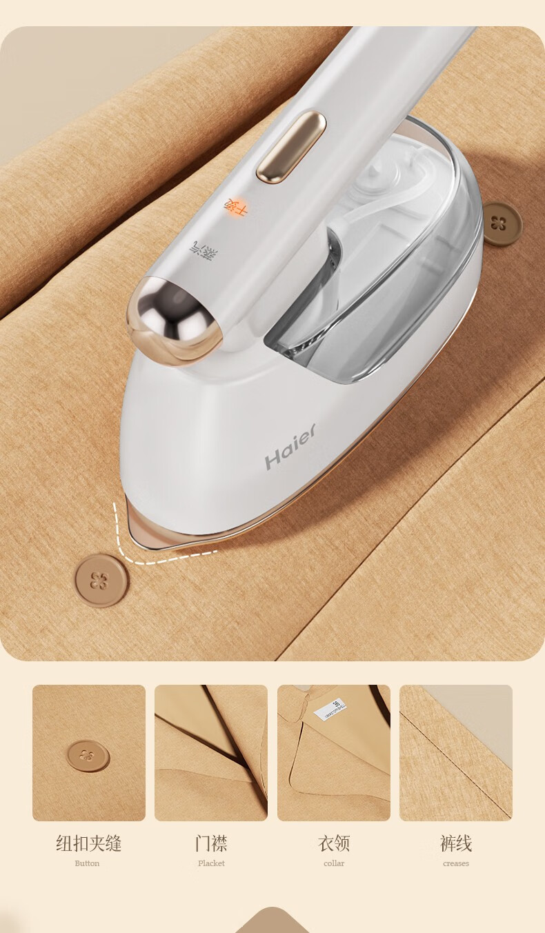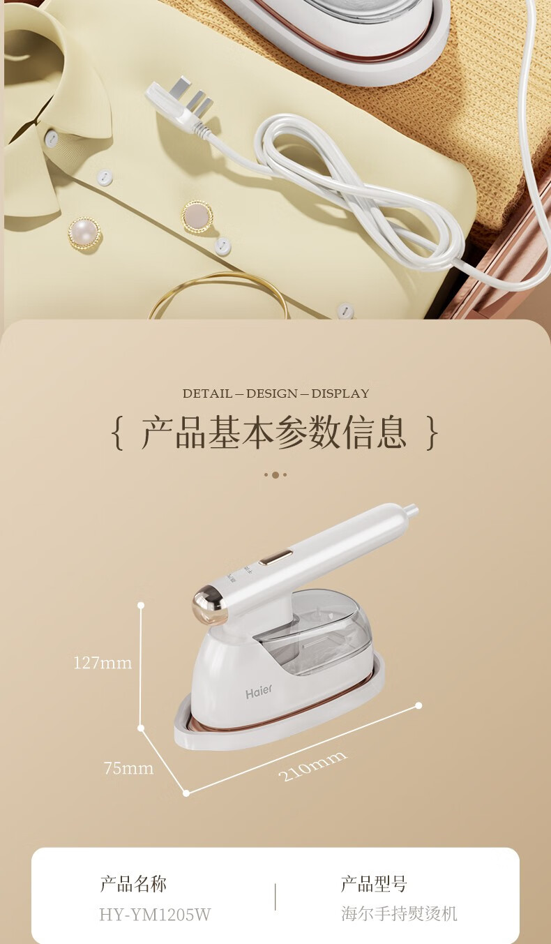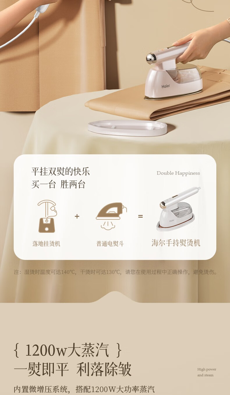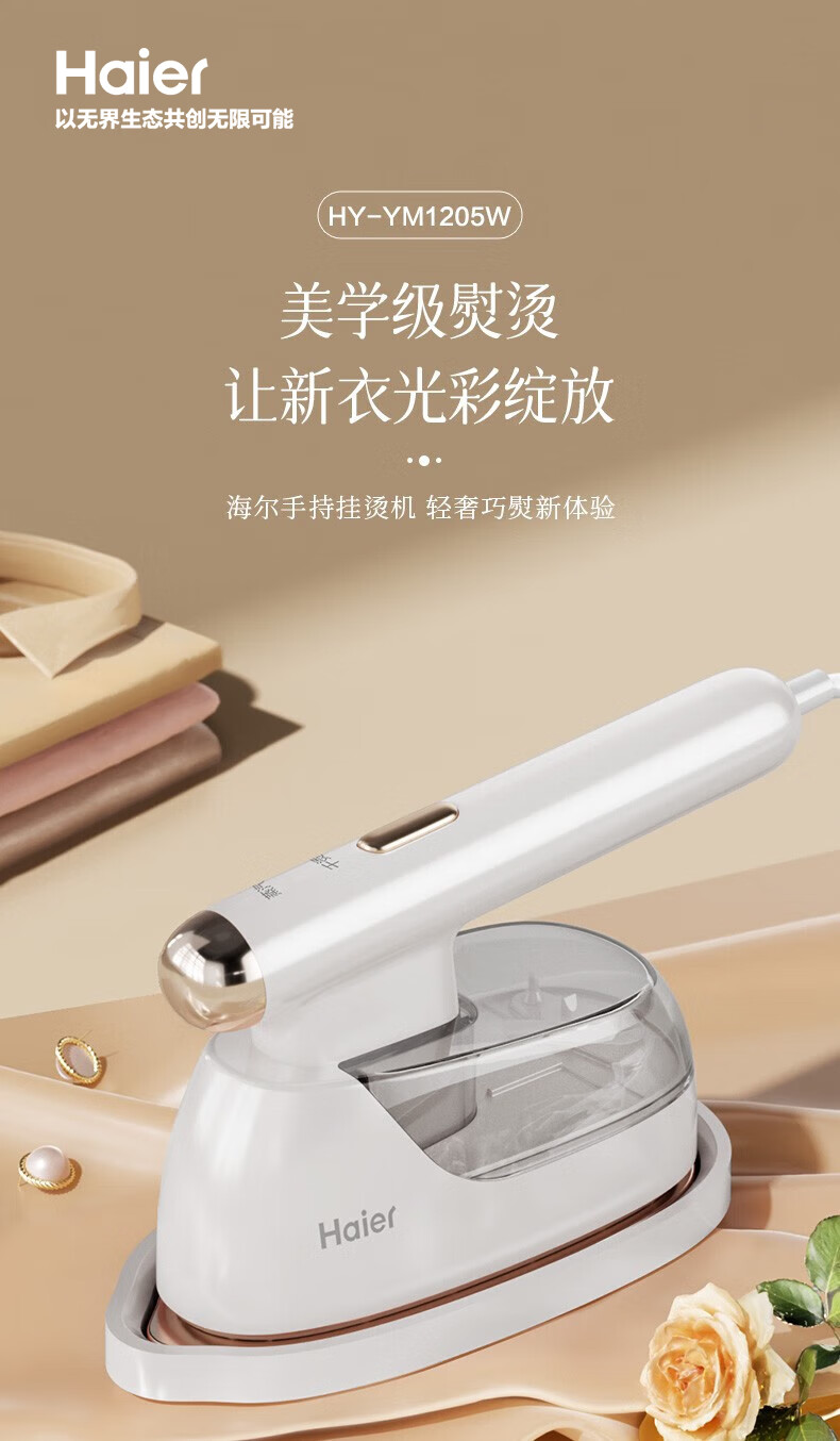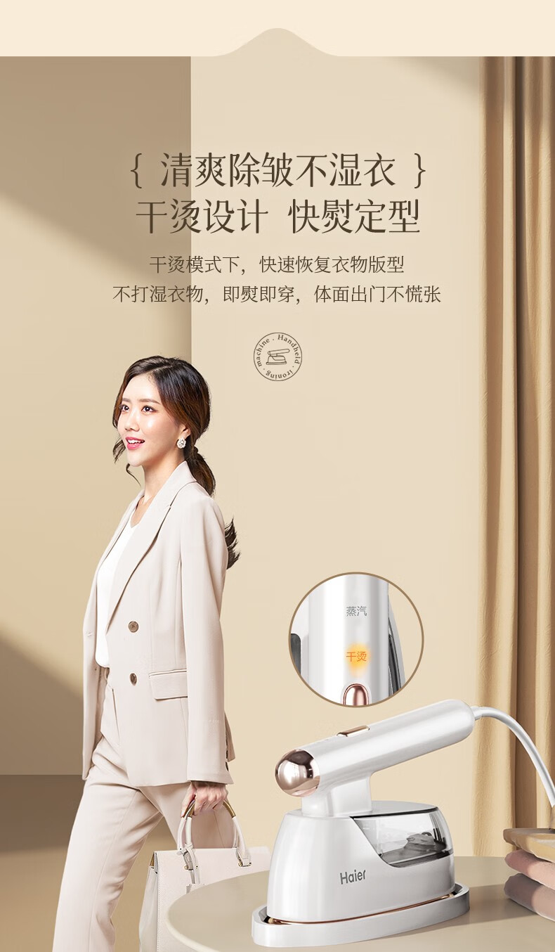 海尔(Haier)挂烫机手持家用挂烫机蒸汽电熨斗杀菌干湿两用增压除皱宿舍熨烫衣服神器迷你小型便携熨烫机 【干湿两烫】平挂两用HY-YM1205W