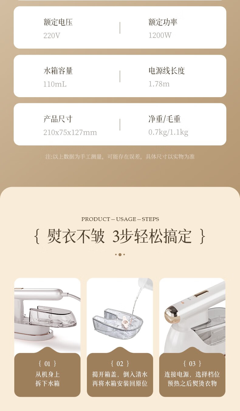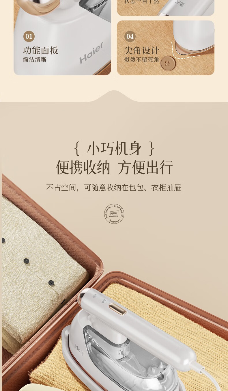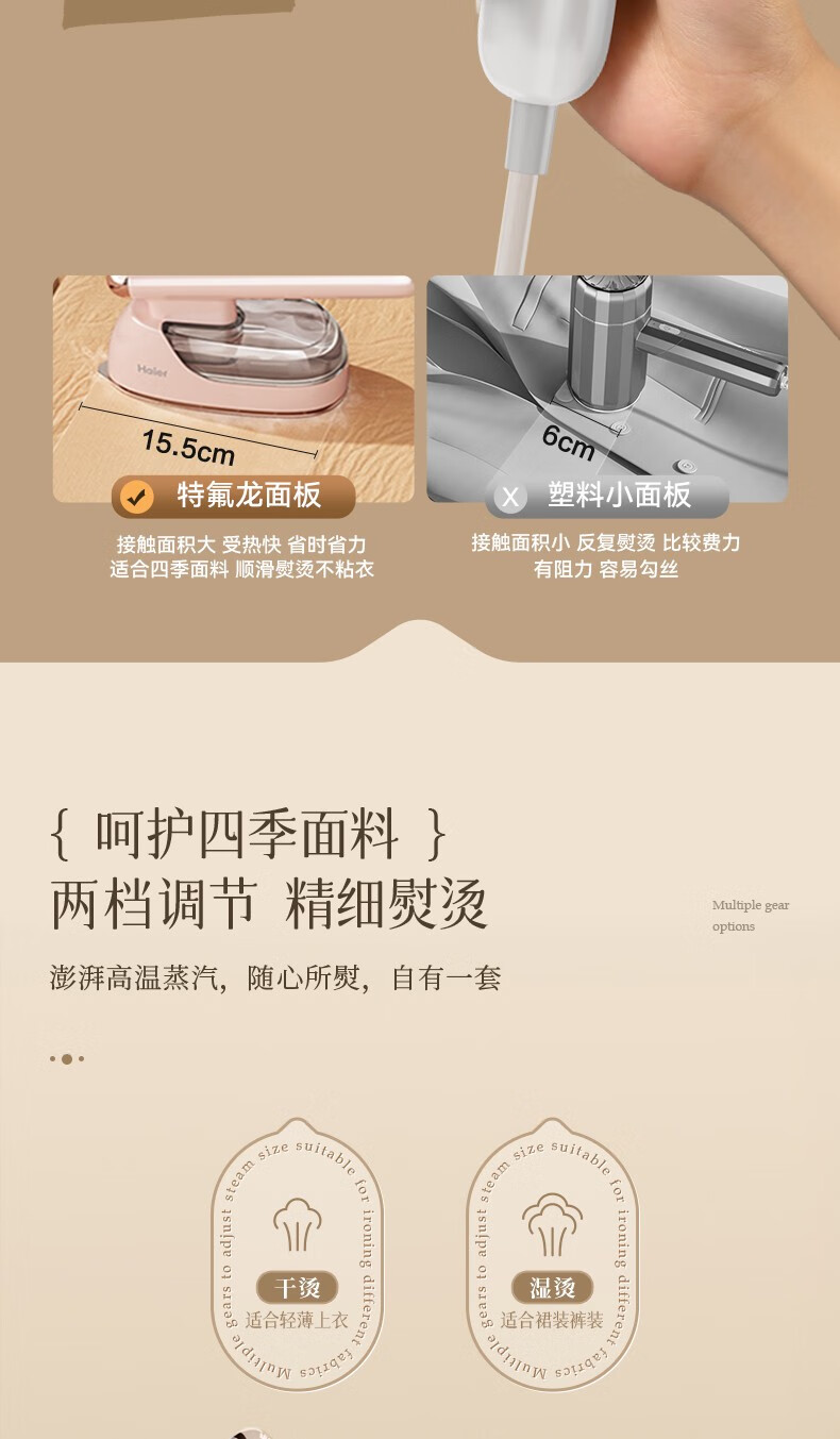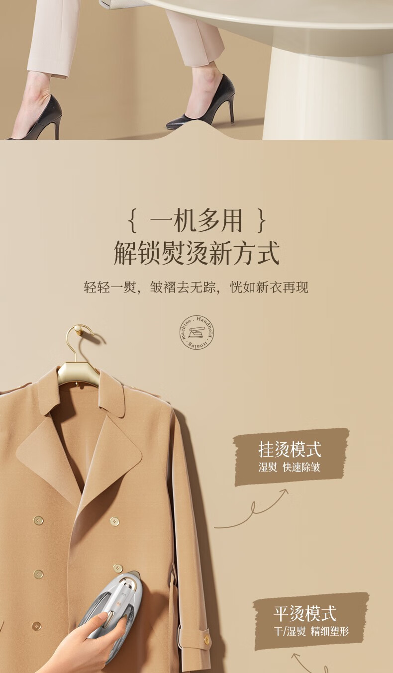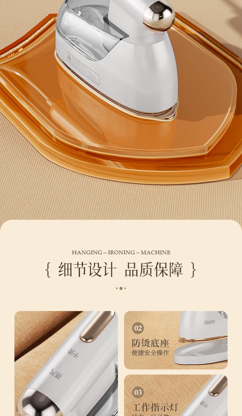 海尔(Haier)挂烫机手持家用挂烫机蒸汽电熨斗杀菌干湿两用增压除皱宿舍熨烫衣服神器迷你小型便携熨烫机 【干湿两烫】平挂两用HY-YM1205W