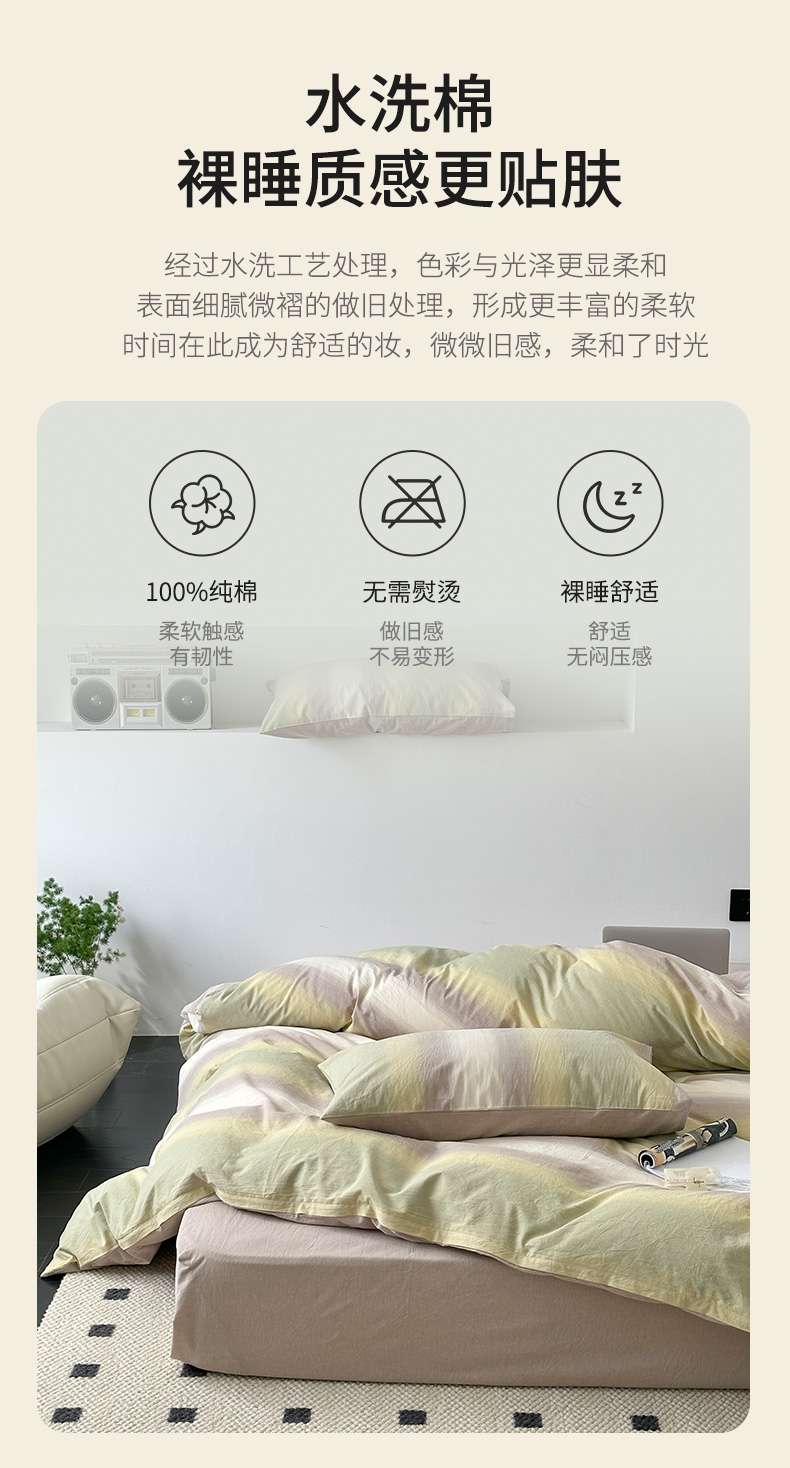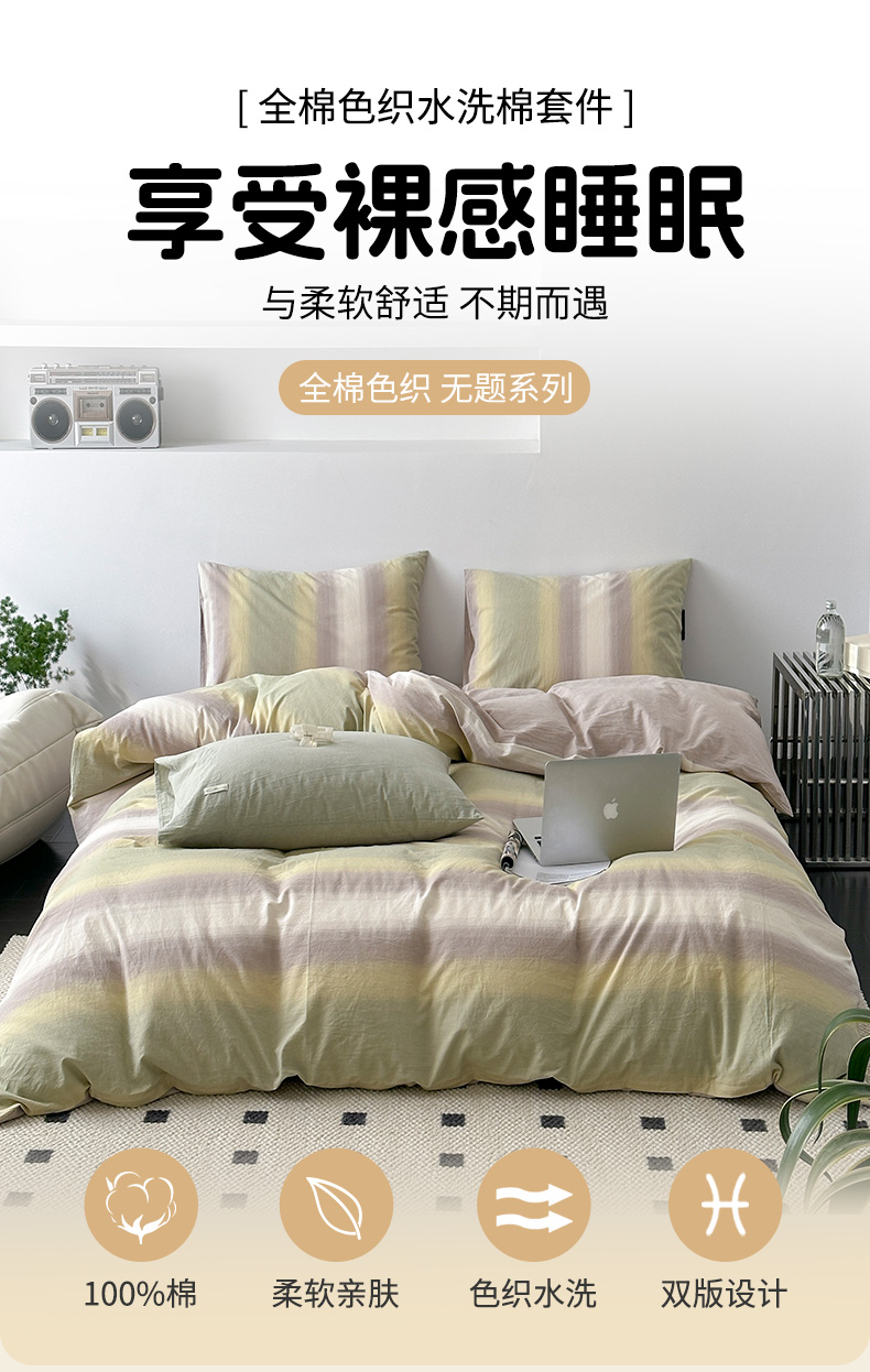 【品牌直发】加倍生活 水洗色织全棉四件套 无题系列 6色可选yc0205010
